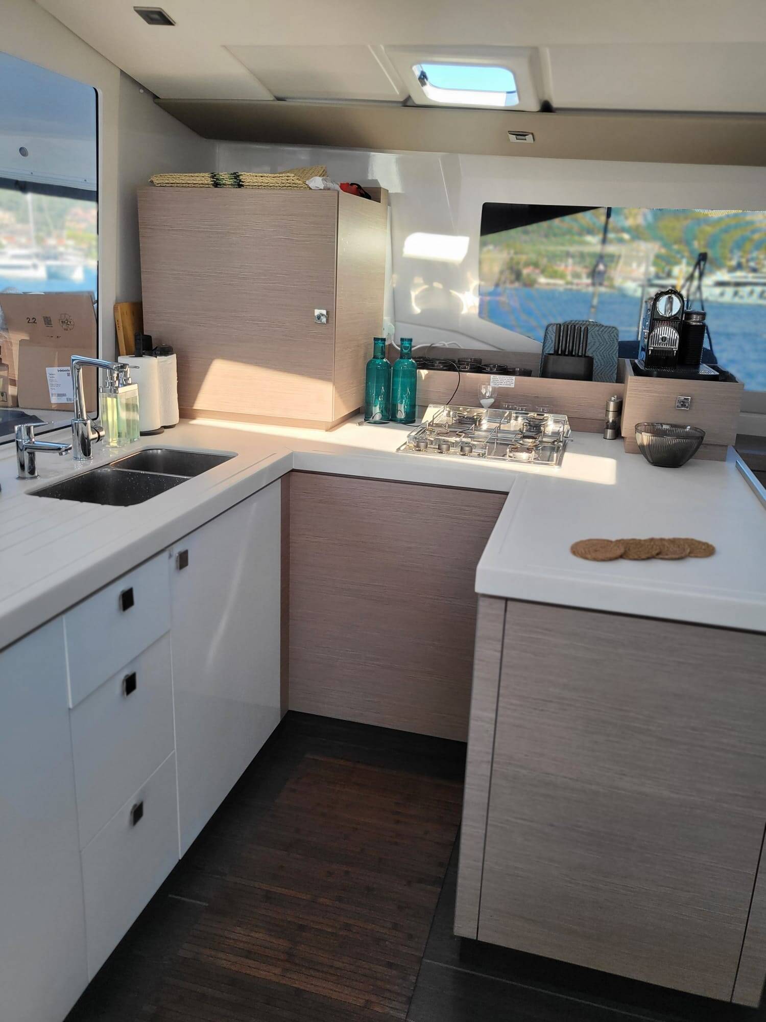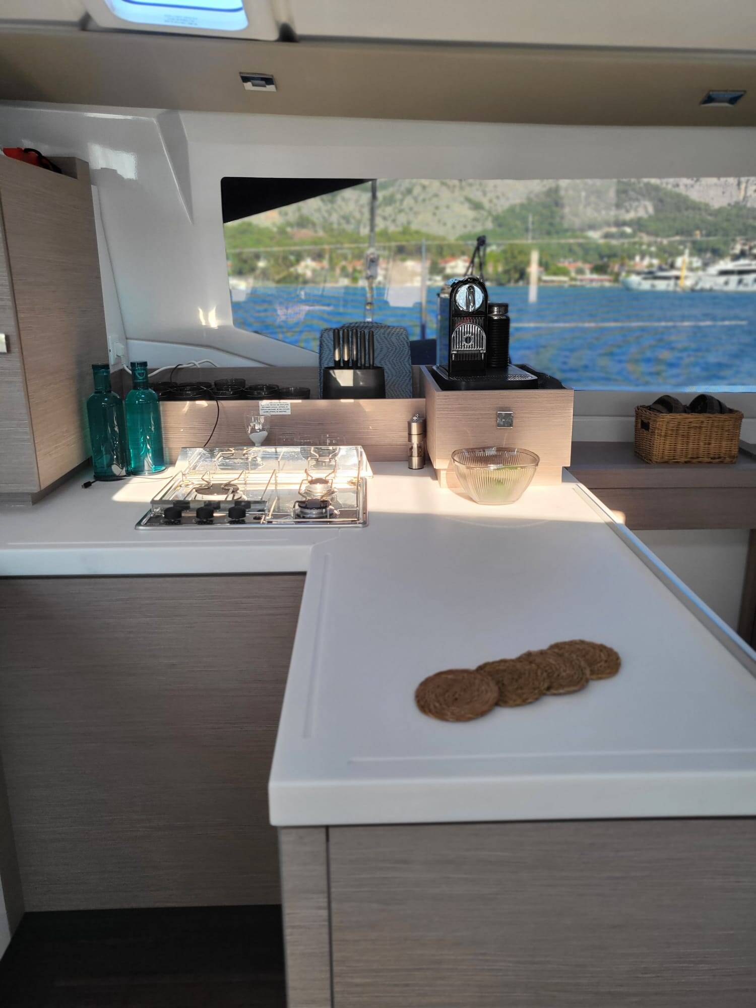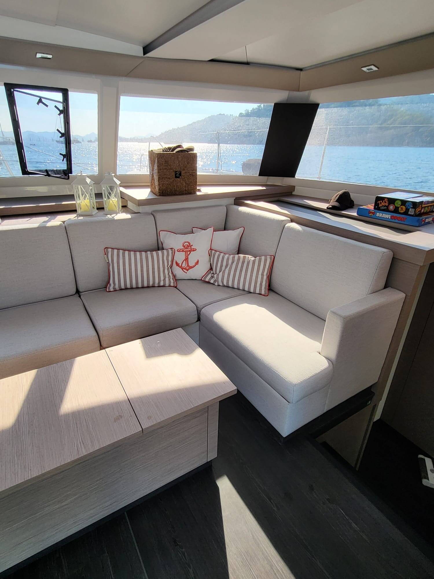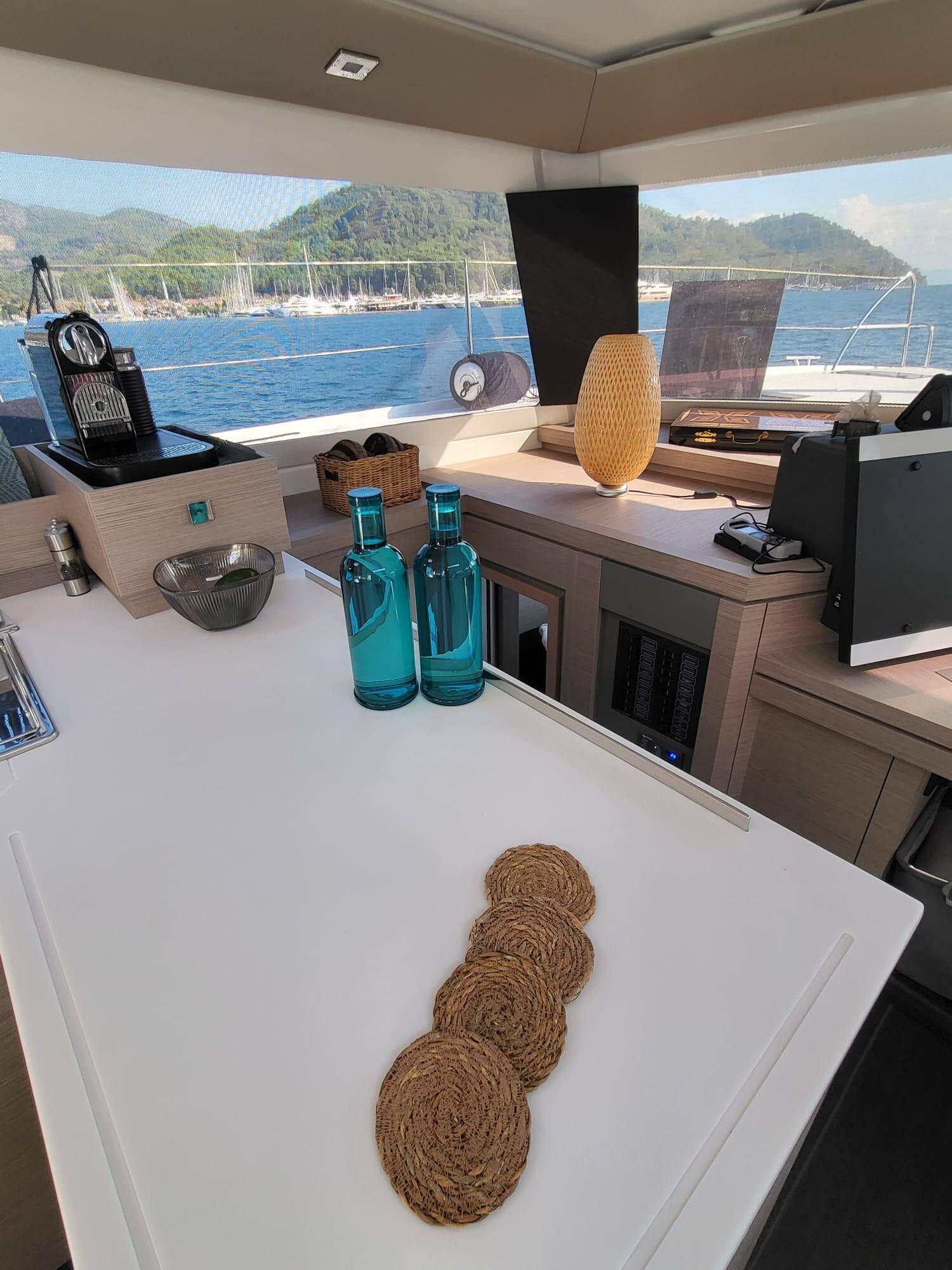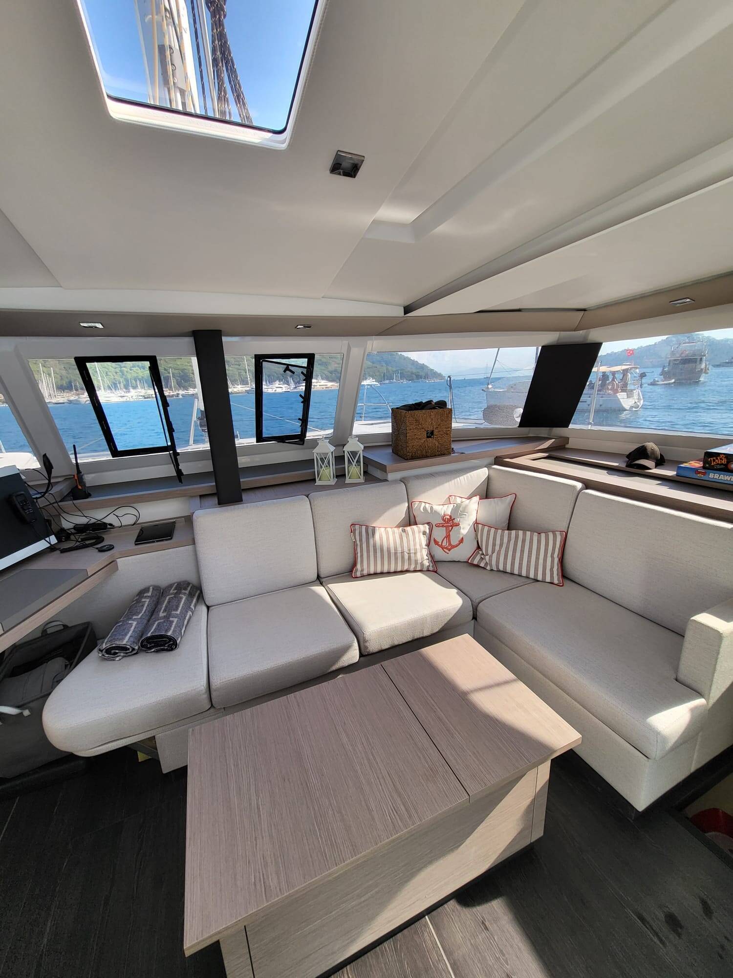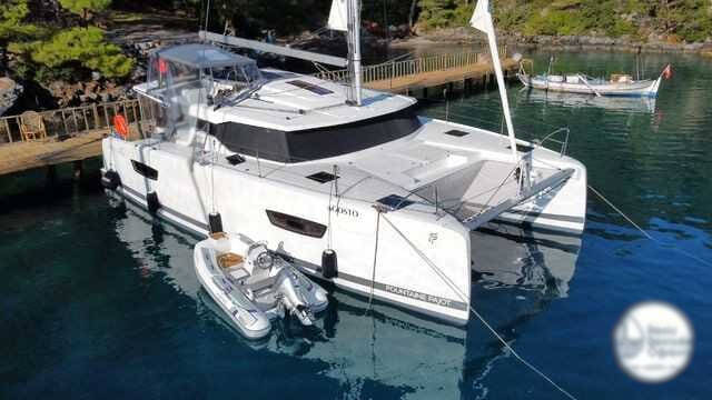Catamaran Fountaine Pajot Astrea 42 Maestro Agosto, built in 2022 is anchored in the Marmaris Yacht Marina, Aegean, Turkey. It has 3 cabins, can accommodate 6 people and has 3 toilets. Bed linen and kitchen equipment are included in the price.