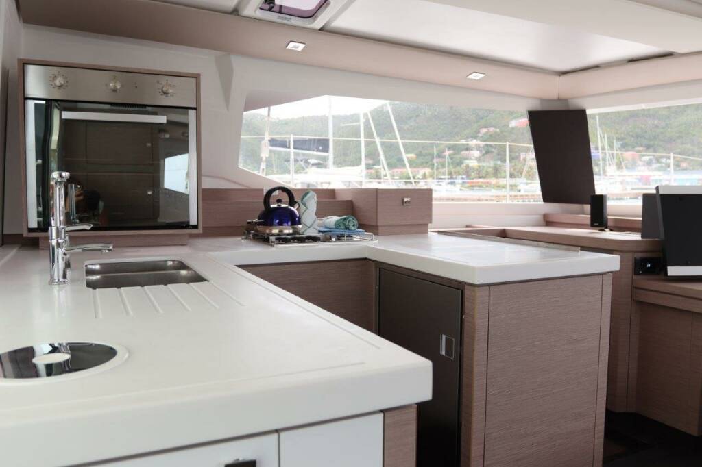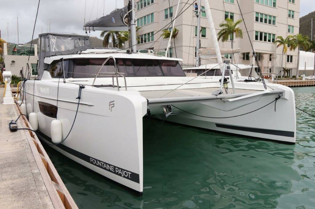 Catamaran Fountaine Pajot Astrea 42 Penny Lane, built in 2020 is anchored in the BVI, Tortola, Ritter House Marina, British Virgin Islands, British Virgin Islands. It has 4 + 1 cabins, can accommodate 8 + 1 people and has 4 toilets. Bed linen and kitchen equipment are included in the price.