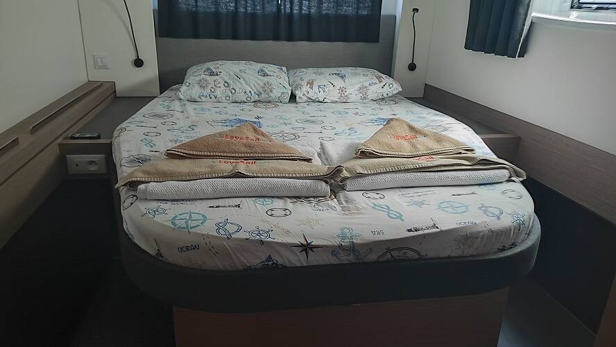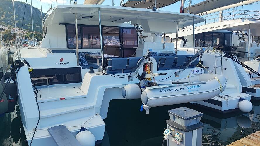 Catamaran Fountaine Pajot Astrea 42 Reina, built in 2022 is anchored in the Fethiye, Yacht Classic Hotel Marina, Aegean, Turkey. It has 4 + 2 cabins, can accommodate 8 + 2 people and has 4 toilets. Bed linen and kitchen equipment are included in the price.