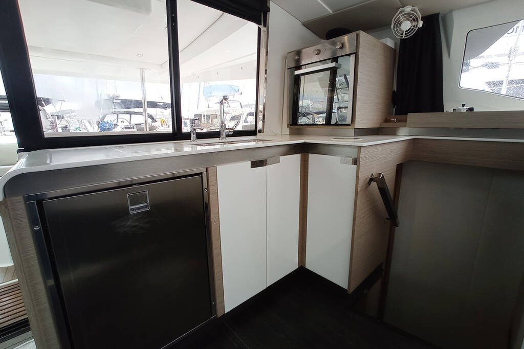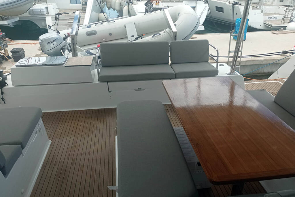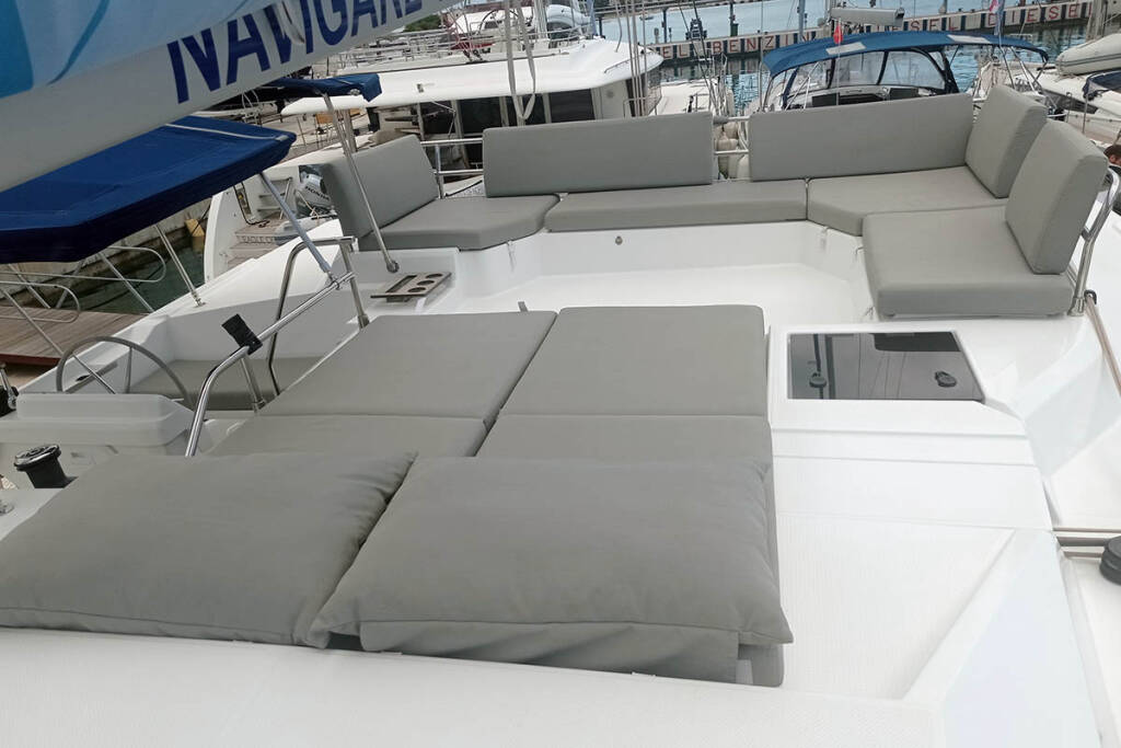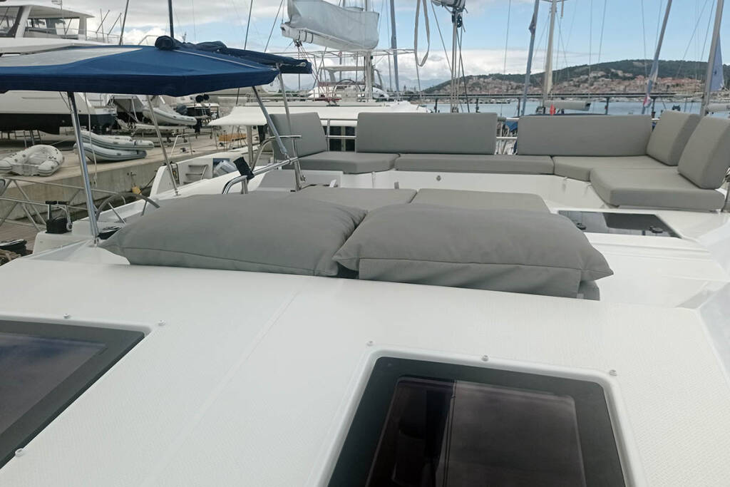 Catamaran Fountaine Pajot Elba 45 Coco, built in 2020 is anchored in the Trogir, Yachtclub Seget (Marina Baotić), Split region, Croatia. It has 4 + 2 cabins, can accommodate 8 + 2 + 2 people and has 4 toilets. Bed linen and kitchen equipment are included in the price.