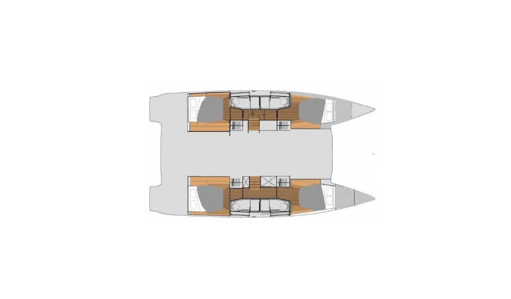 Catamaran Fountaine Pajot Elba 45 Fiyolo, built in 2022 is anchored in the St. Thomas, Frenchtown Marina, US- Virgin Islands, United States Virgin Islands. It has 4 cabins, can accommodate 8 people and has 4 toilets. Bed linen and kitchen equipment are included in the price.