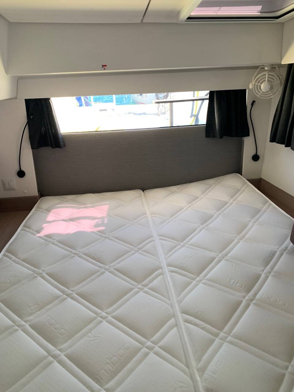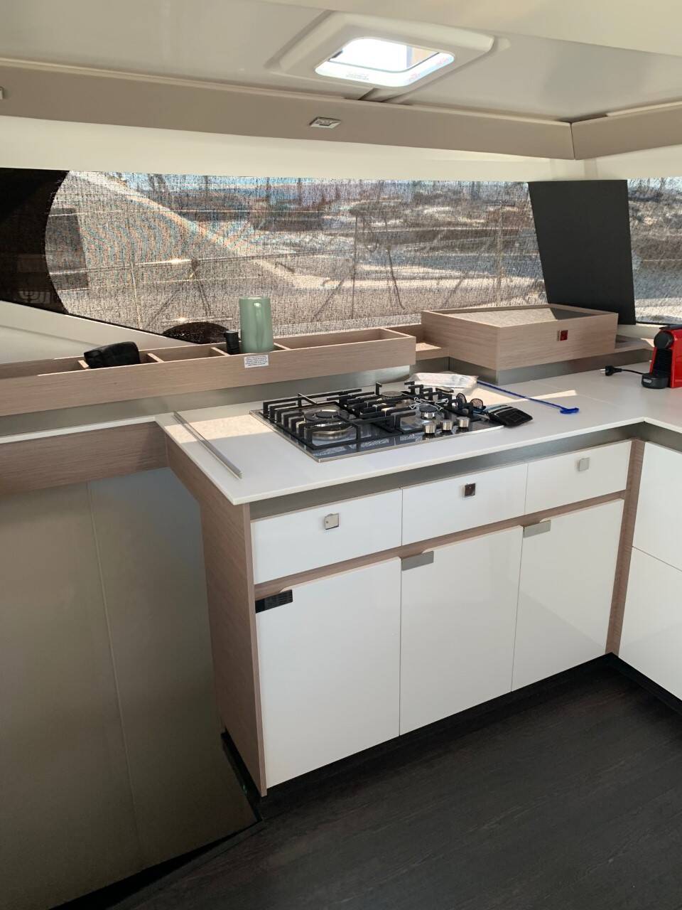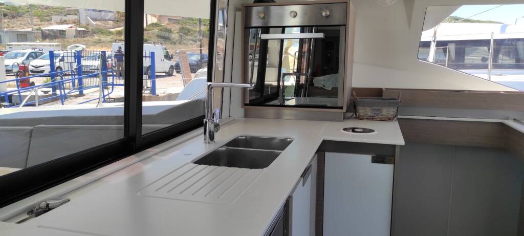 Catamaran Fountaine Pajot Elba 45 Kon-tiki, built in 2020 is anchored in the Lavrion - Olympic Marine, Athens area/Saronic/Peloponese, Greece. It has 4 + 2 cabins, can accommodate 8 + 2 + 2 people and has 4 + 1 toilets. Bed linen and kitchen equipment are included in the price.
