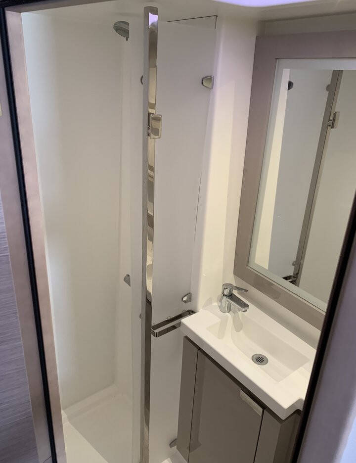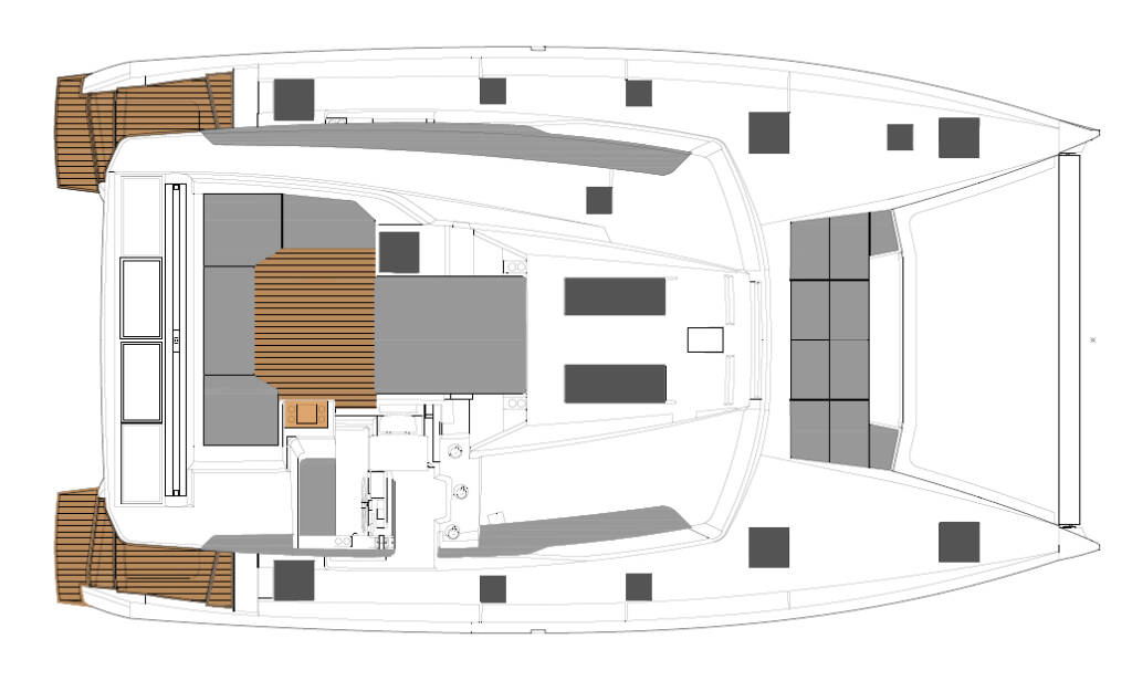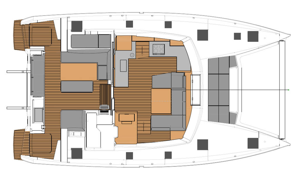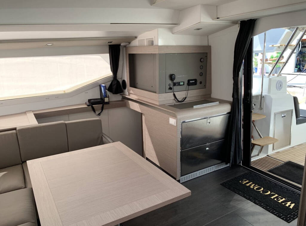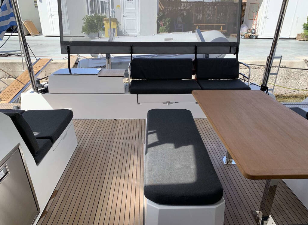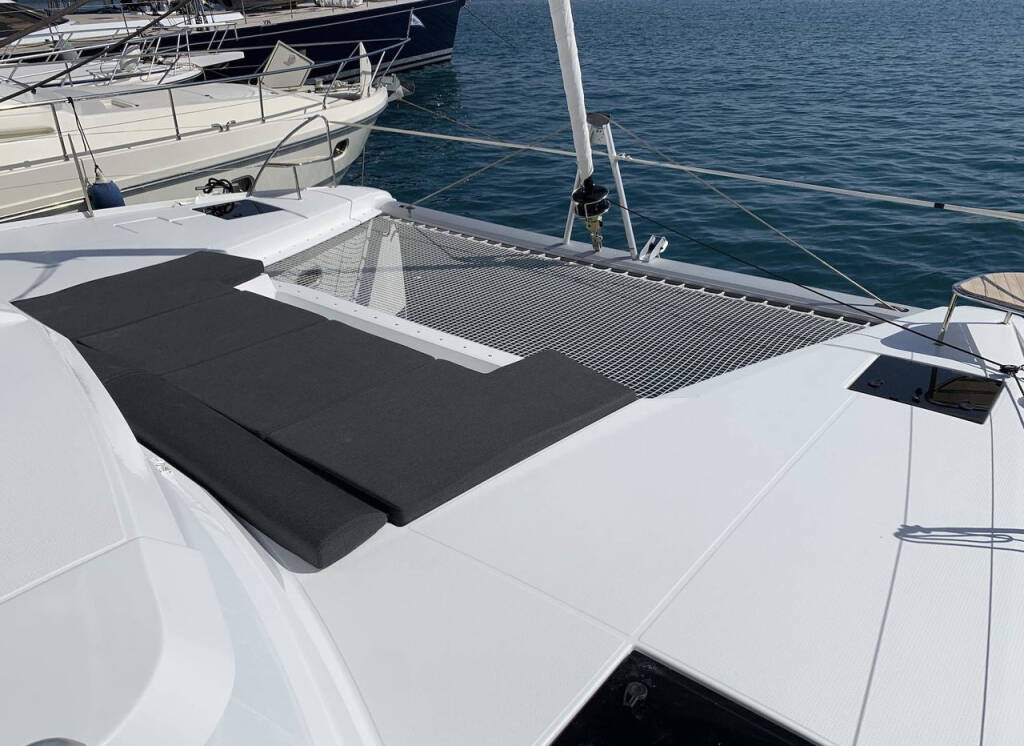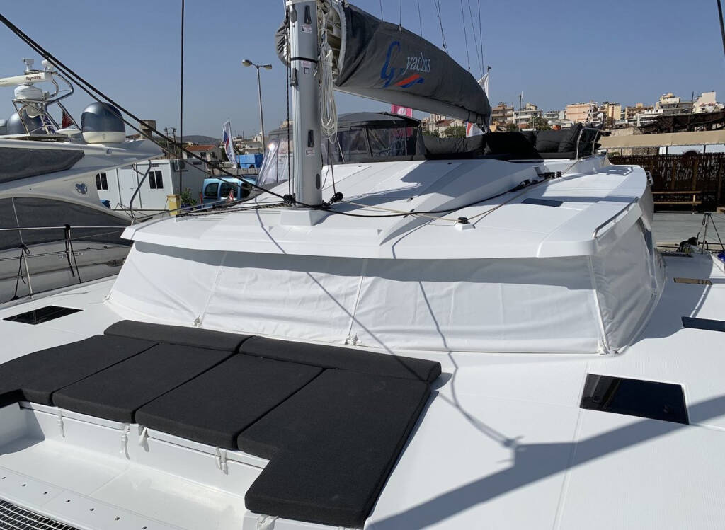 Catamaran Fountaine Pajot Elba 45 Lazuli, built in 2020 is anchored in the Athens, Alimos marina, Athens area/Saronic/Peloponese, Greece. It has 4 + 2 cabins, can accommodate 8 + 2 + 2 people and has 4 toilets. Bed linen and kitchen equipment are included in the price.