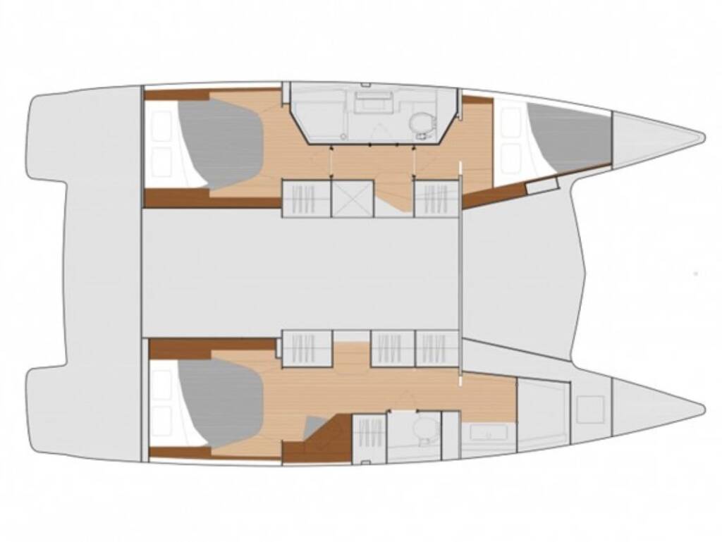 Catamaran Fountaine Pajot Isla 40 Sea Magik, built in 2022 is anchored in the St. Thomas, Frenchtown Marina, US- Virgin Islands, United States Virgin Islands. It has 3 cabins, can accommodate 6 people and has 2 toilets. Bed linen and kitchen equipment are included in the price.