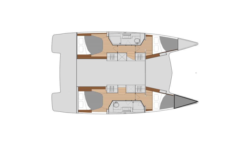 Catamaran Fountaine Pajot Isla 40 Seas The Day, built in 2023 is anchored in the Bahamas, Abacos, Boat Harbour Marina, Abaco Islands, Bahamas. It has 4 cabins, can accommodate 8 people and has 2 toilets. Bed linen and kitchen equipment are included in the price.