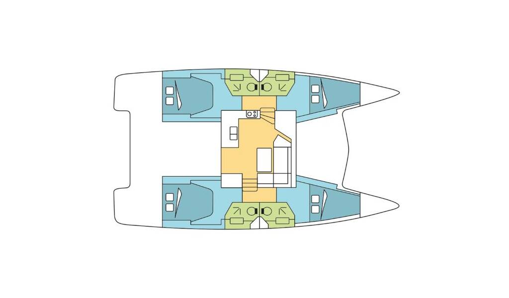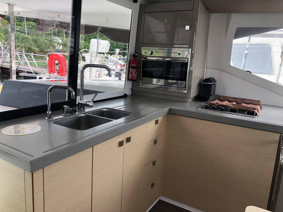 Catamaran Fountaine Pajot Lucia 40 FLAMBOYANT, built in 2017 is anchored in the Grenada, Port Louis Marina, Grenada, Caribbean. It has 4 cabins, can accommodate 8 + 2 people and has 4 toilets. Bed linen and kitchen equipment are included in the price.