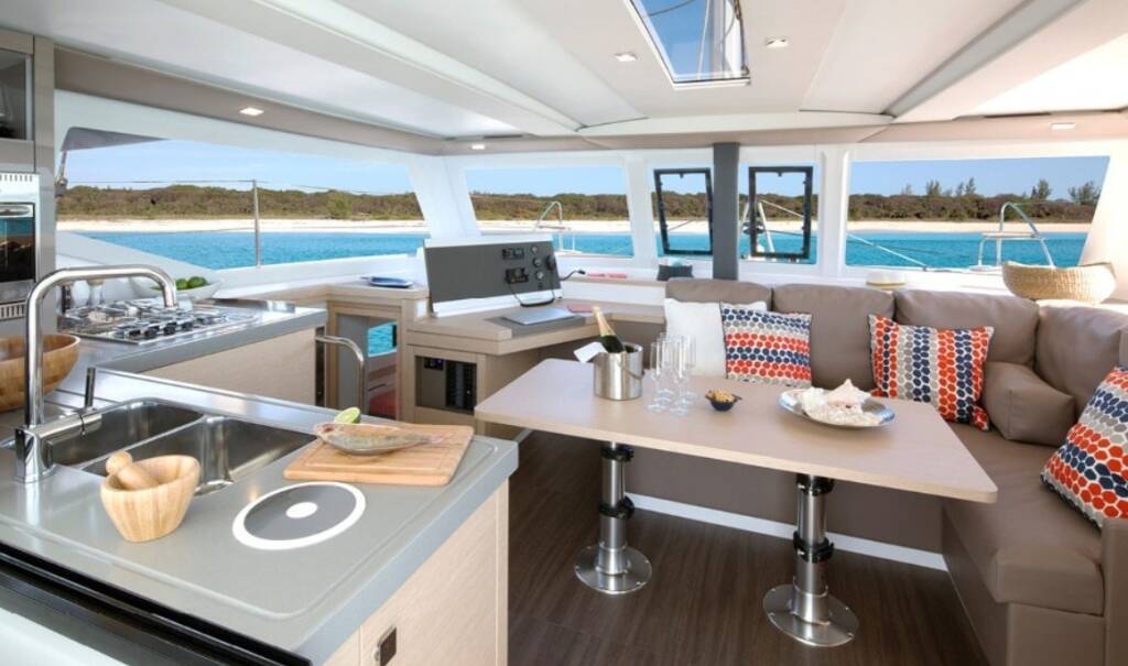 Catamaran Fountaine Pajot Lucia 40 HAPPY HOUR, built in 2020 is anchored in the Guadeloupe, La Marina Bas du Fort, Guadeloupe, Caribbean. It has 4 cabins, can accommodate 8 + 2 people and has 4 toilets. Bed linen and kitchen equipment are included in the price.