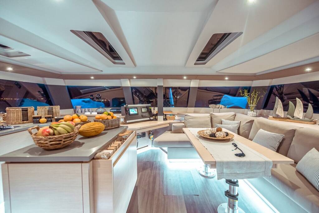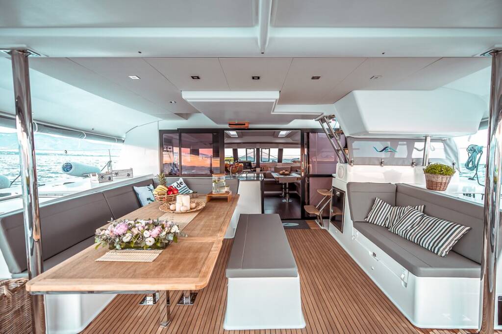 Catamaran Fountaine Pajot Saba 50 Sea Energy V, built in 2018 is anchored in the Athens, Alimos marina, Athens area/Saronic/Peloponese, Greece. It has 5 + 2 cabins, can accommodate 10 + 2 people and has 5 + 2 toilets. Bed linen and kitchen equipment are included in the price.