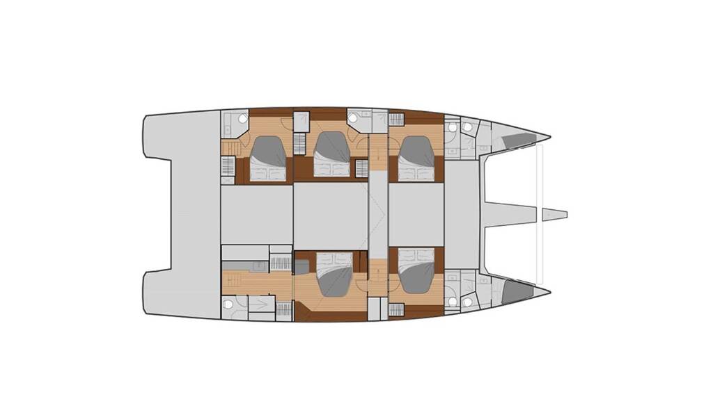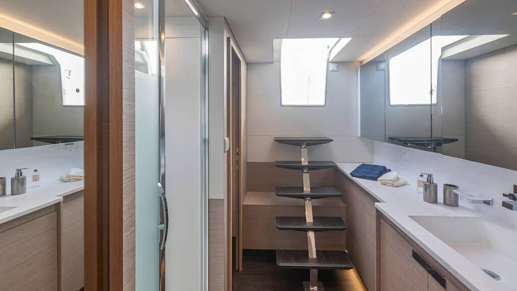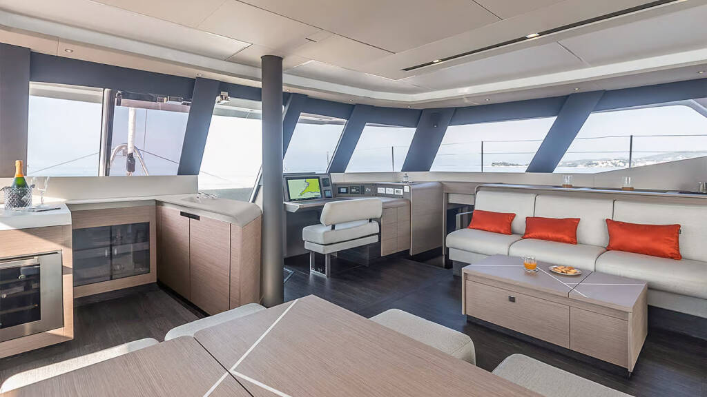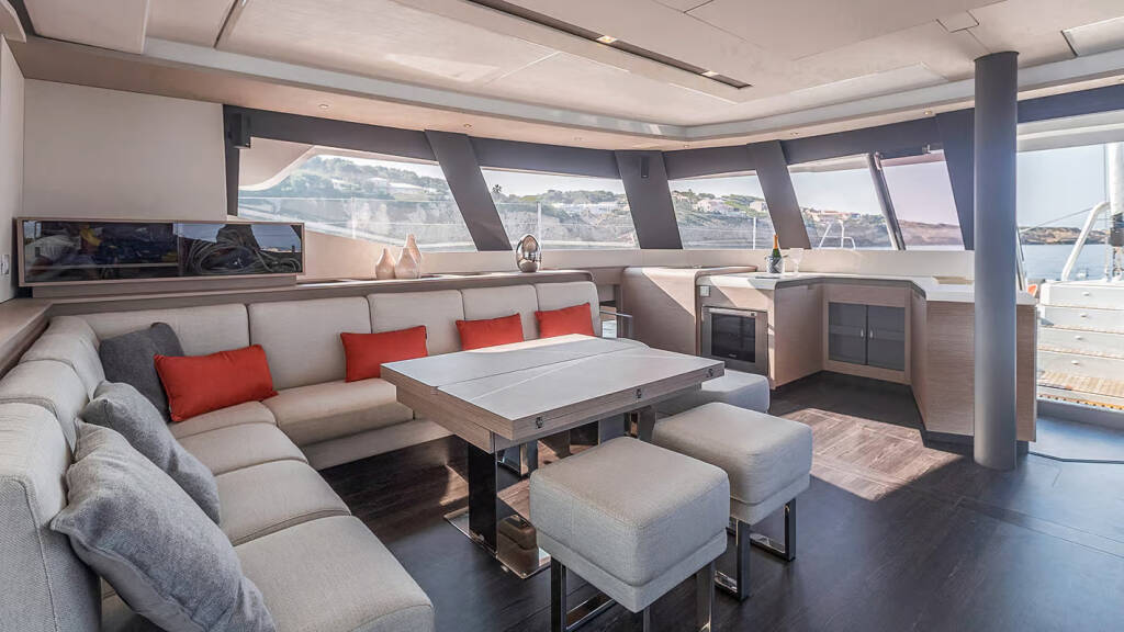 Catamaran Fountaine Pajot Samana 59 Hourglass, built in 2025 is anchored in the BVI, Soper's Hole Wharf & Marina, British Virgin Islands, British Virgin Islands. It has 4 cabins, can accommodate 8 people and has 4 + 2 toilets. Bed linen and kitchen equipment are included in the price.