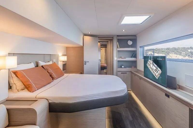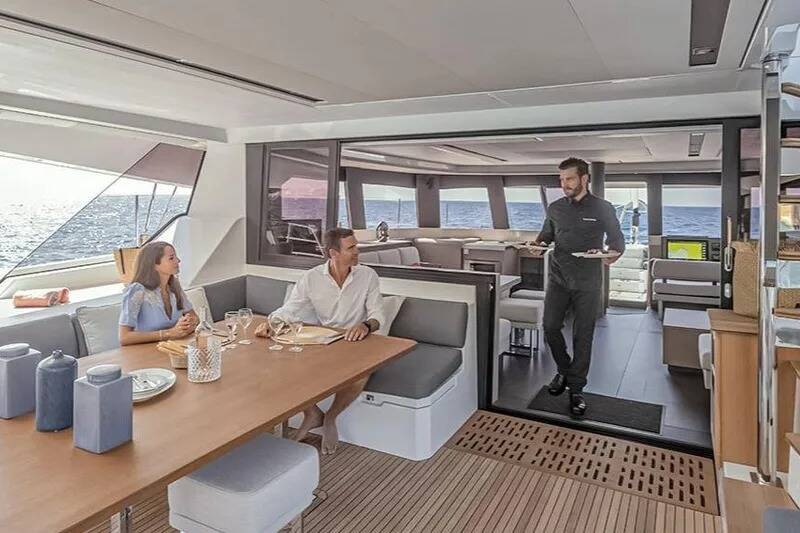 Catamaran Fountaine Pajot Samana 59 Maia, built in 2025 is anchored in the Marina di Procida, Campania, Italy. It has 6 + 2 cabins, can accommodate 12 + 3 people and has 6 + 2 toilets. Bed linen and kitchen equipment are included in the price.