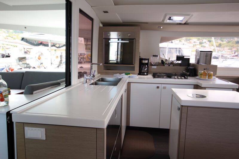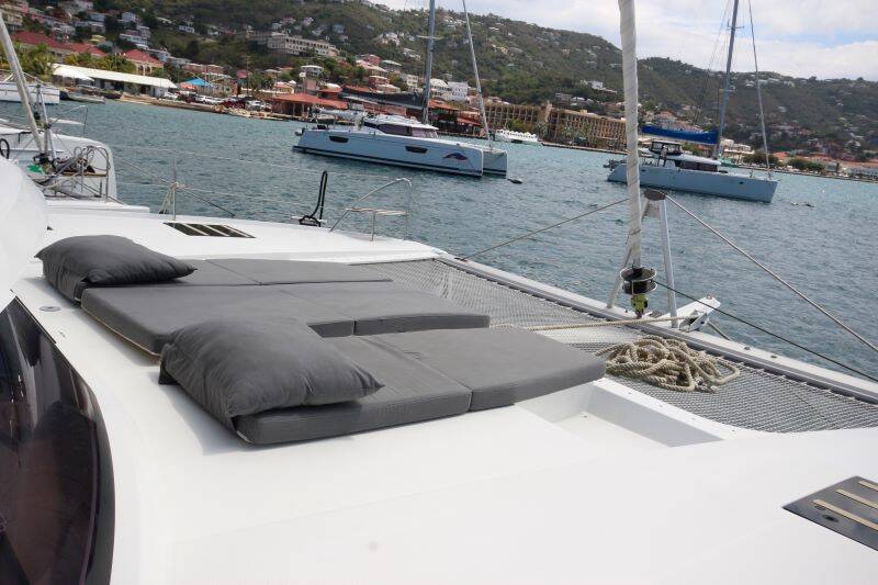 Catamaran Fountaine Pajot Saona 47 La Belle Vie, built in 2021 is anchored in the St. Thomas, Frenchtown Marina, US- Virgin Islands, United States Virgin Islands. It has 5 cabins, can accommodate 10 people and has 5 toilets. Bed linen and kitchen equipment are included in the price.