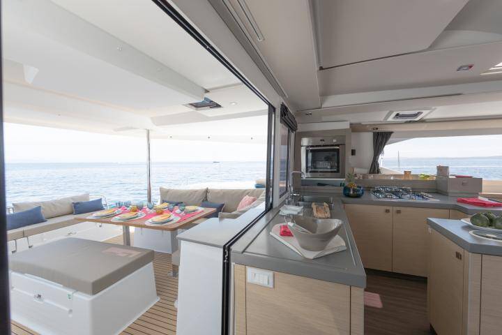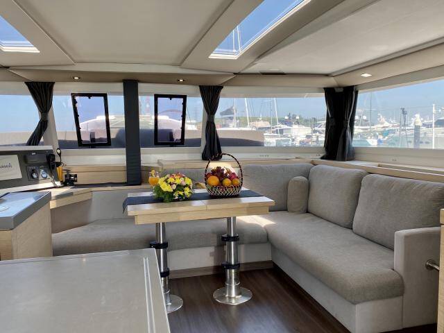 Catamaran Fountaine Pajot Saona 47 Lola 2, built in 2018 is anchored in the Phuket, Yacht Haven Marina, Phuket, Thailand . It has 5 cabins, can accommodate 10 people and has 5 toilets. Bed linen and kitchen equipment are included in the price.