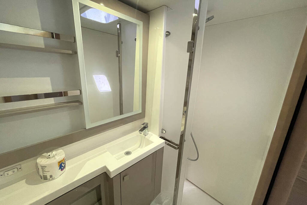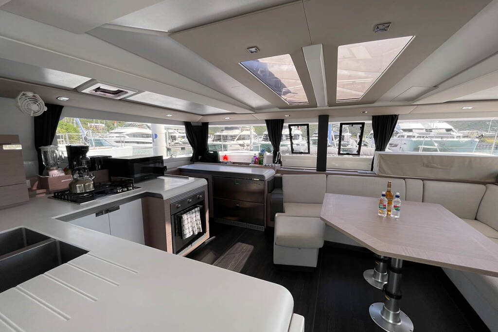 Catamaran Fountaine Pajot Tanna 47 Knotty Cat (Forever Young), built in 2022 is anchored in the BVI, Tortola, Nanny Cay Marina, British Virgin Islands, British Virgin Islands. It has 5 + 1 cabins, can accommodate 10 + 1 + 1 people and has 4 + 1 toilets. Bed linen and kitchen equipment are included in the price.