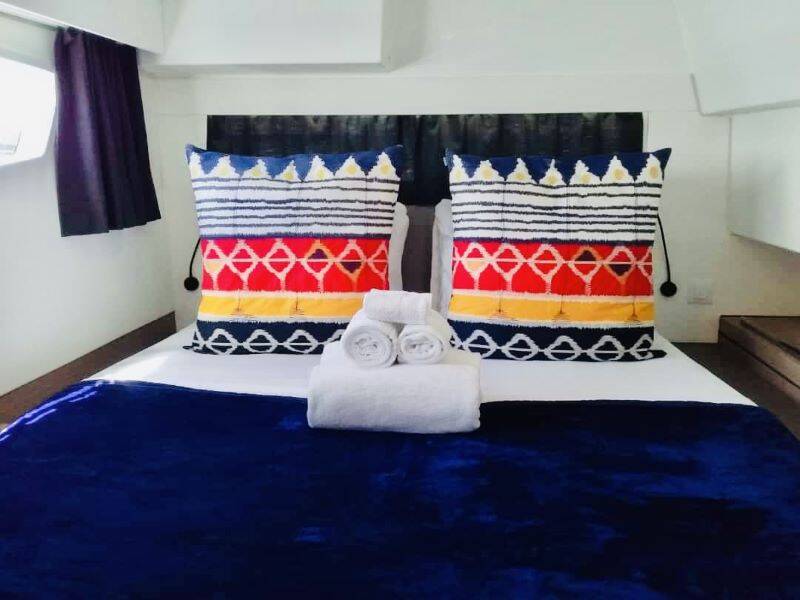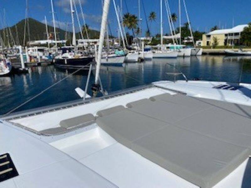 Catamaran Fountaine Pajot Tanna 47 Ojala, built in 2021 is anchored in the St. Thomas, Frenchtown Marina, US- Virgin Islands, United States Virgin Islands. It has 5 + 1 cabins, can accommodate 10 + 1 people and has 5 toilets. Bed linen and kitchen equipment are included in the price.