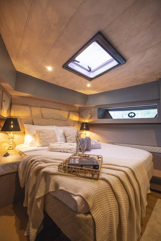 Motor yacht Golden blue Golden Blue, built in 2023 is anchored in the Fethiye, Ece Saray Marina Resort, Aegean, Turkey. It has 3 cabins, can accommodate 6 people and has 2 toilets. Bed linen and kitchen equipment are included in the price.