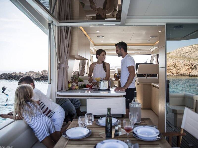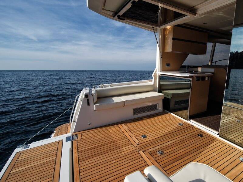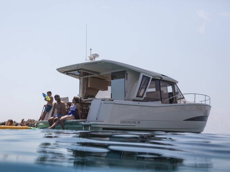 Motor yacht Greenline 39 NN, built in 2024 is anchored in the Pomorska Športska Udruga Banj - Trogir, Split region, Croatia. It has 2 cabins, can accommodate 4 + 1 people and has 1 toilets. Bed linen and kitchen equipment are included in the price.