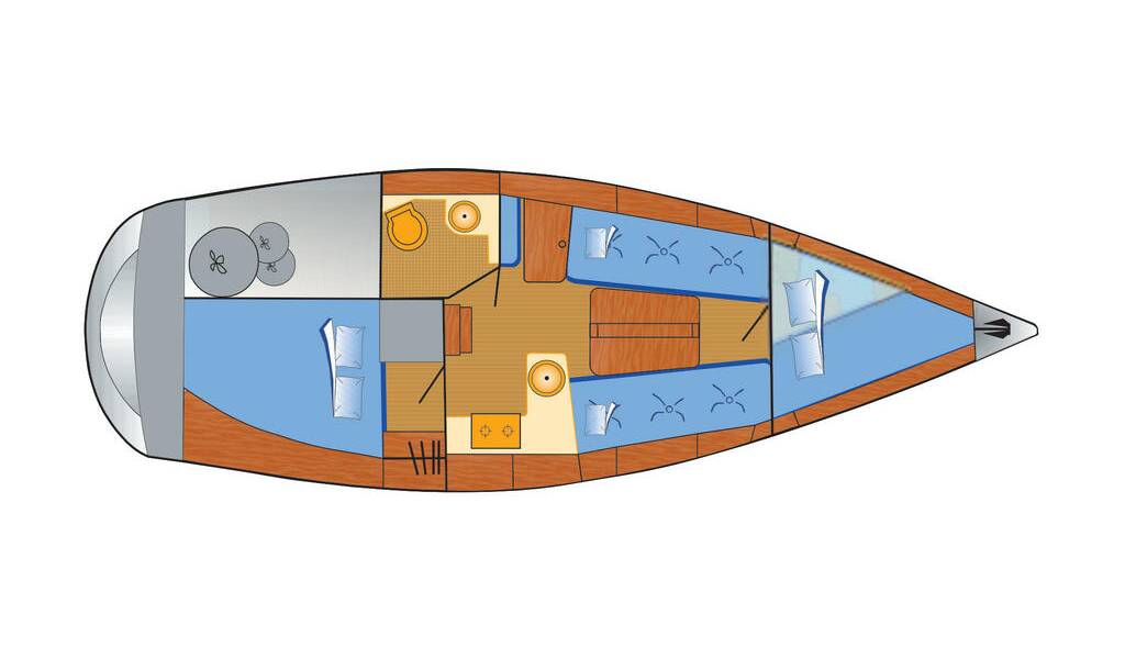 Sailing yacht Hanse 315 Mizar, built in 2006 is anchored in the Barth, Yachtwerft Ramin, Mecklenburg, Germany. It has 2 cabins, can accommodate 4 people and has 1 toilets. Bed linen and kitchen equipment are included in the price.