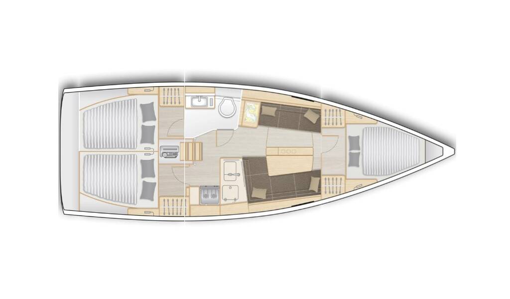 Sailing yacht Hanse 348- 3 cab. Nausicaa, built in 2024 is anchored in the Cote D'Azur, Marseille Marina Vieux Port, Provence-Alpes-Côte d'Azur, France. It has 3 cabins, can accommodate 6 people and has 1 toilets. Bed linen and kitchen equipment are included in the price.