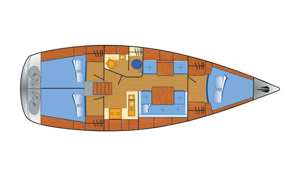 Sailing yacht Hanse 370 Ronja, built in 2009 is anchored in the Barth, Yachtwerft Ramin, Mecklenburg, Germany. It has 3 cabins, can accommodate 6 people and has 1 toilets. Bed linen and kitchen equipment are included in the price.