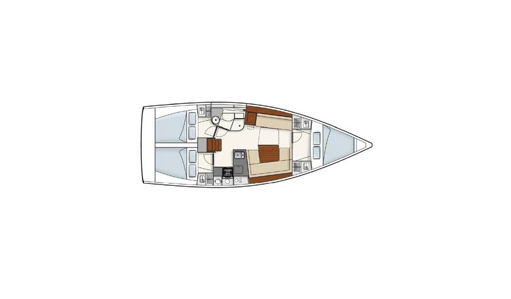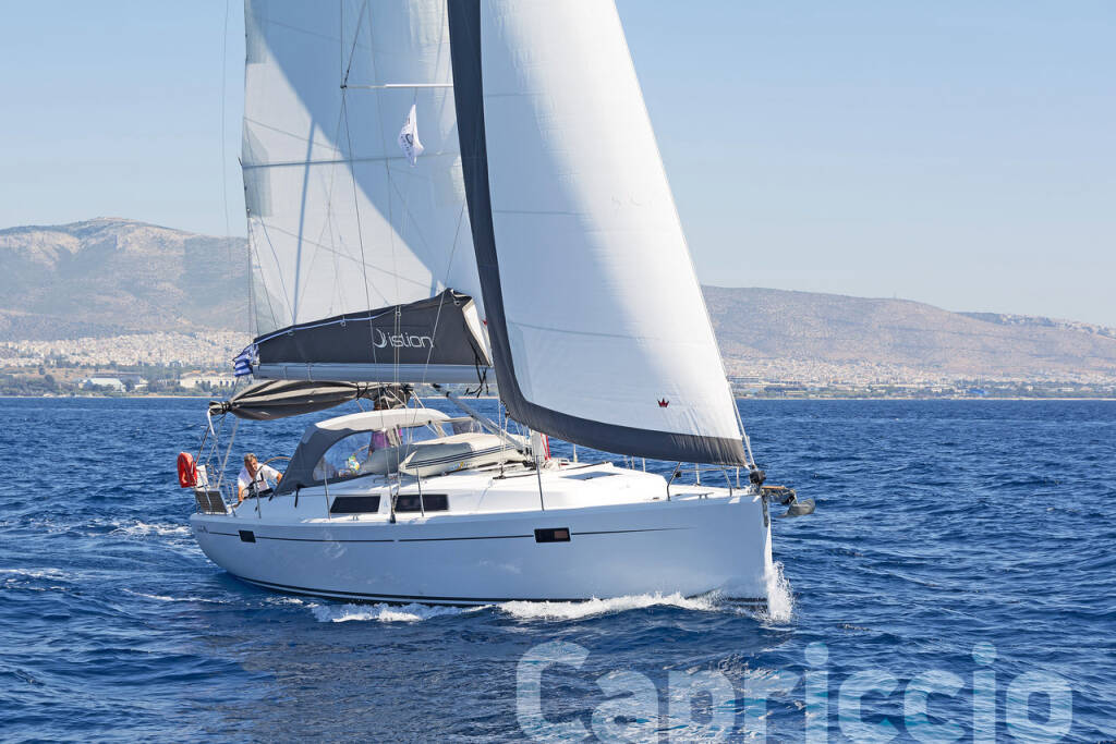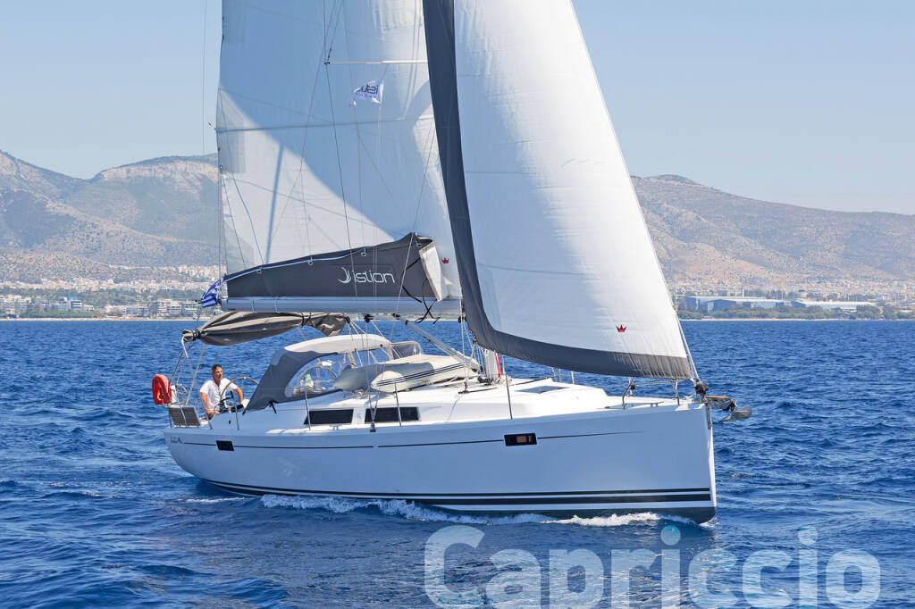 Sailing yacht Hanse 385 Capriccio, built in 2017 is anchored in the Lavrion, main port, Athens area/Saronic/Peloponese, Greece. It has 3 cabins, can accommodate 6 + 2 people and has 1 toilets. Bed linen and kitchen equipment are included in the price.