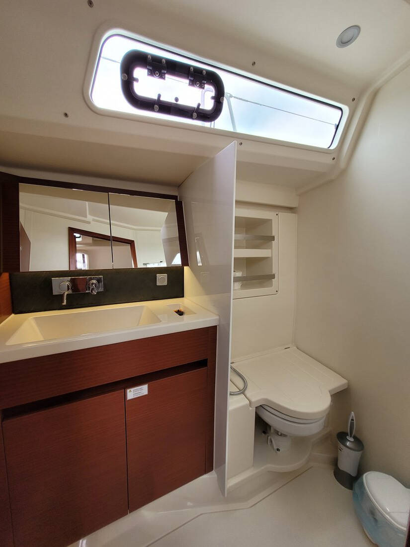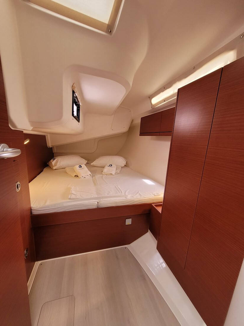 Sailing yacht Hanse 418 heNA, built in 2021 is anchored in the Lavrion - Olympic Marine, Athens area/Saronic/Peloponese, Greece. It has 3 cabins, can accommodate 6 + 2 people and has 2 toilets. Bed linen and kitchen equipment are included in the price.