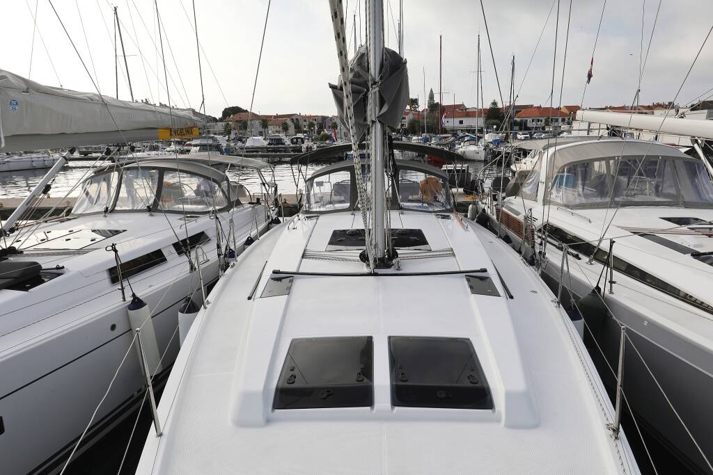 Sailing yacht Hanse 455 Panna, built in 2018 is anchored in the Marina Šangulin, Biograd, Zadar region, Croatia. It has 4 cabins, can accommodate 8 + 2 people and has 2 toilets. Bed linen and kitchen equipment are included in the price.