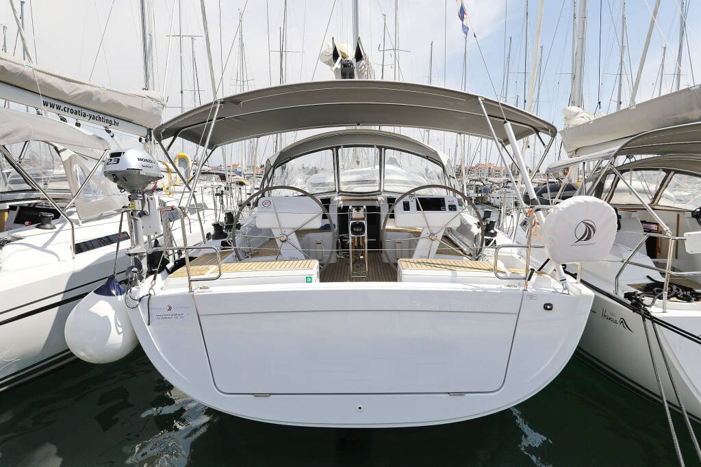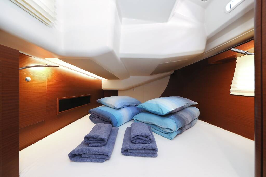 Sailing yacht Hanse 458 Chloe, built in 2019 is anchored in the Marina Kastela, Split region, Croatia. It has 4 cabins, can accommodate 8 + 2 people and has 2 toilets. Bed linen and kitchen equipment are included in the price.