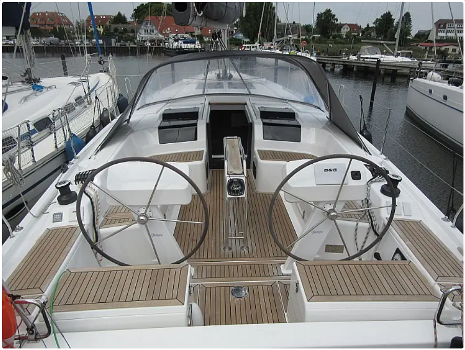 Sailing yacht Hanse 458 Six, built in 2022 is anchored in the Stockholm, Saltsjö Pir Marina, Stockholm County, Sweden. It has 4 cabins, can accommodate 8 + 1 people and has 2 toilets. Bed linen and kitchen equipment are included in the price.