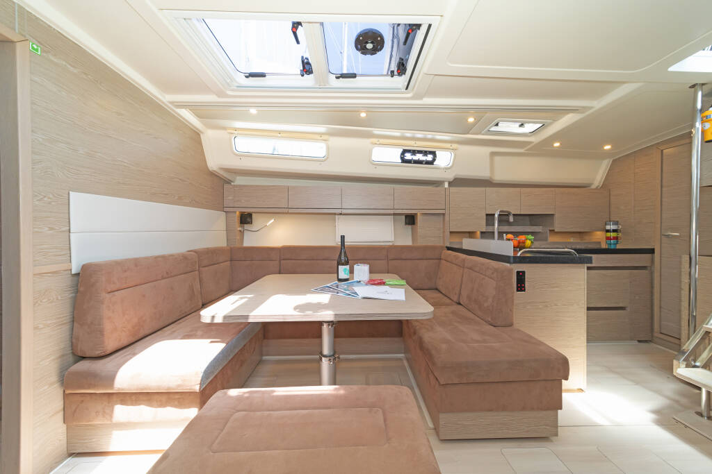 Sailing yacht Hanse 458 Triton, built in 2019 is anchored in the Rhodes New Marina, Dodecanese, Greece. It has 4 cabins, can accommodate 8 + 2 people and has 2 toilets. Bed linen and kitchen equipment are included in the price.