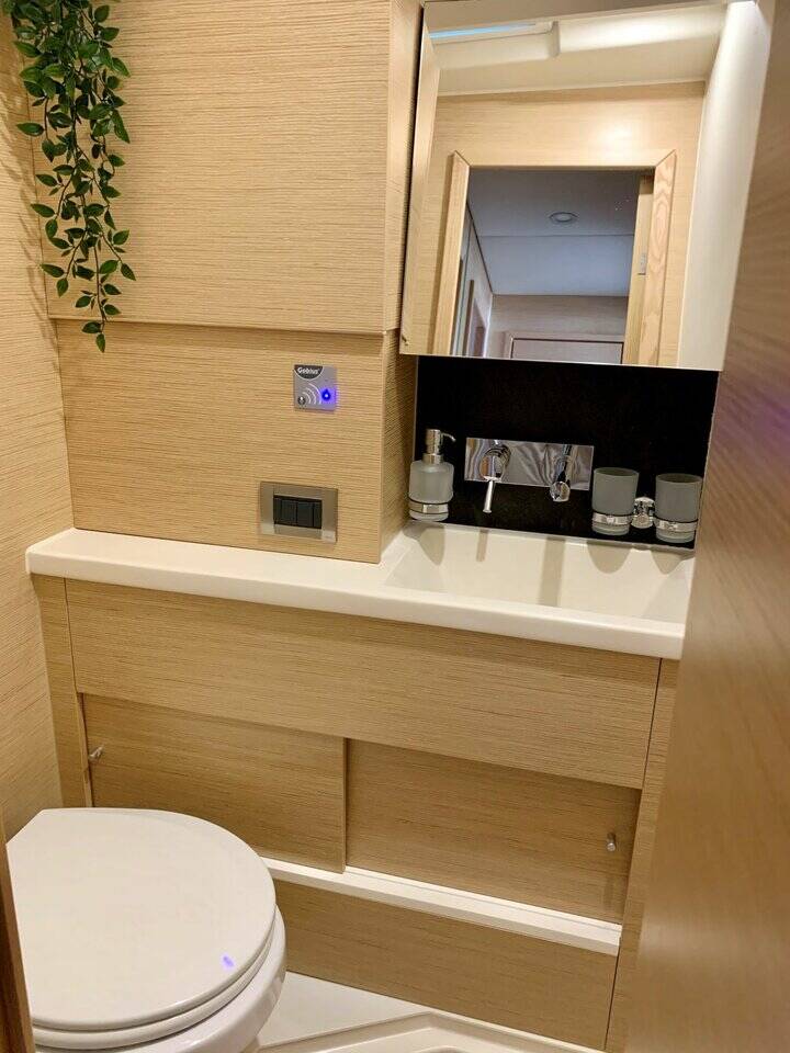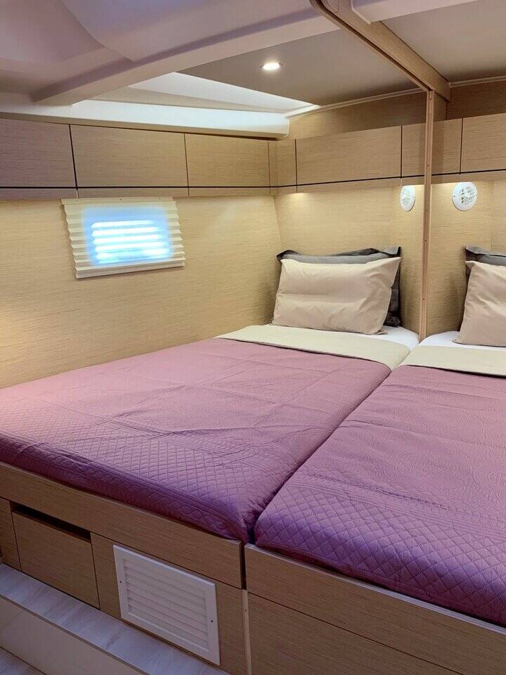Sailing yacht Hanse 508 Artemis, built in 2020 is anchored in the Lefkas, Nikiana Marina, Ionian Islands, Greece. It has 5 + 1 cabins, can accommodate 10 + 2 + 1 people and has 3 + 1 toilets. Bed linen and kitchen equipment are included in the price.