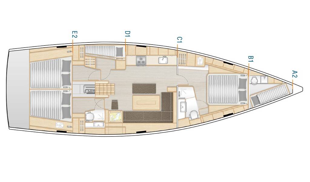 Sailing yacht Hanse 508 Charlabelle - OW, built in 2023 is anchored in the Trogir, Yachtclub Seget (Marina Baotić), Split region, Croatia. It has 4 + 1 cabins, can accommodate 8 + 2 + 1 people and has 2 + 1 toilets. Bed linen and kitchen equipment are included in the price.