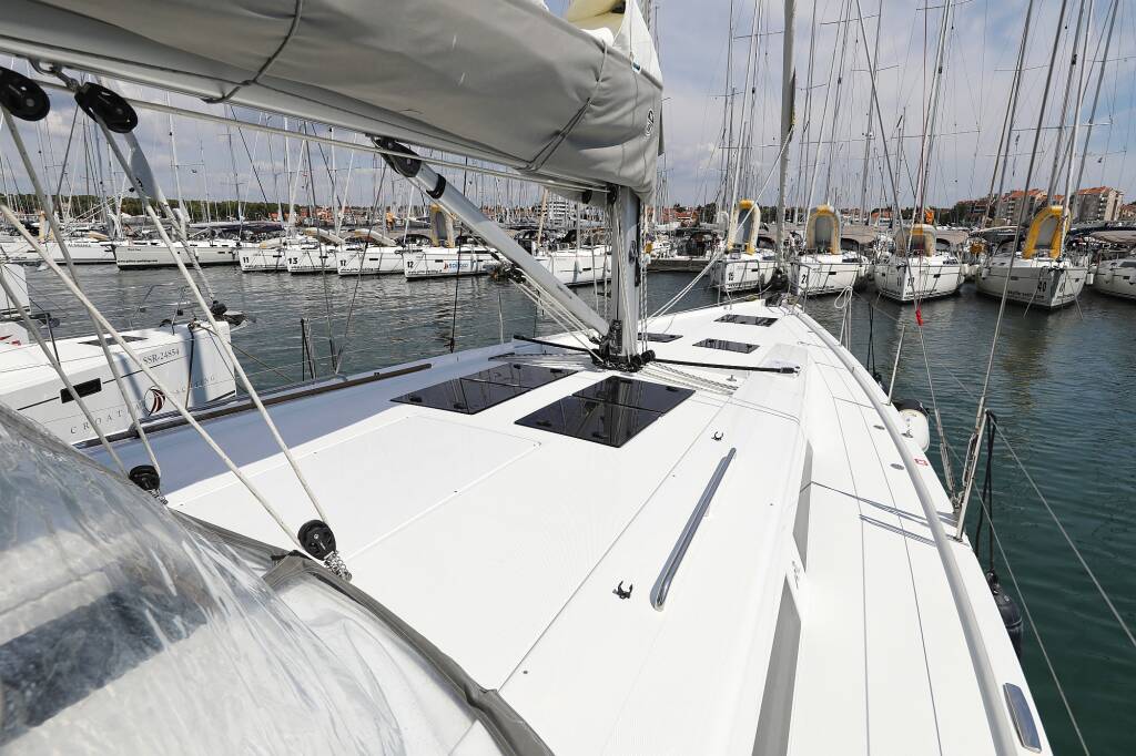 Sailing yacht Hanse 508 Supernatural, built in 2019 is anchored in the Marina Kornati, Biograd, Zadar region, Croatia. It has 5 + 1 cabins, can accommodate 10 + 2 + 1 people and has 3 + 1 toilets. Bed linen and kitchen equipment are included in the price.