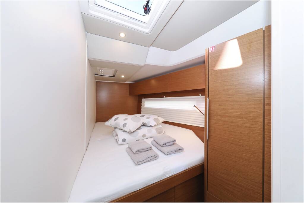 Sailing yacht Hanse 510 Hype, built in 2023 is anchored in the Marina Kornati, Biograd, Zadar region, Croatia. It has 5 + 1 cabins, can accommodate 10 + 2 + 1 people and has 3 + 1 toilets. Bed linen and kitchen equipment are included in the price.