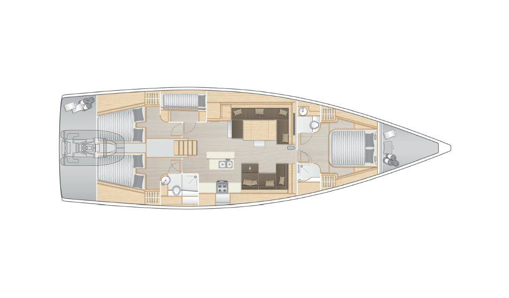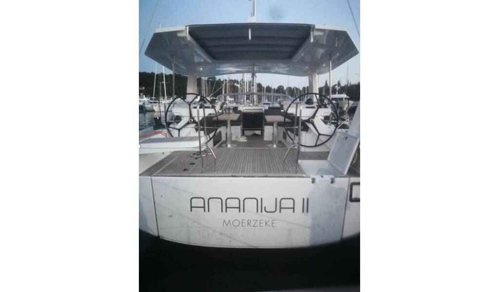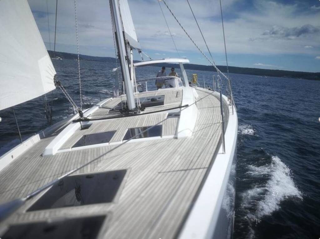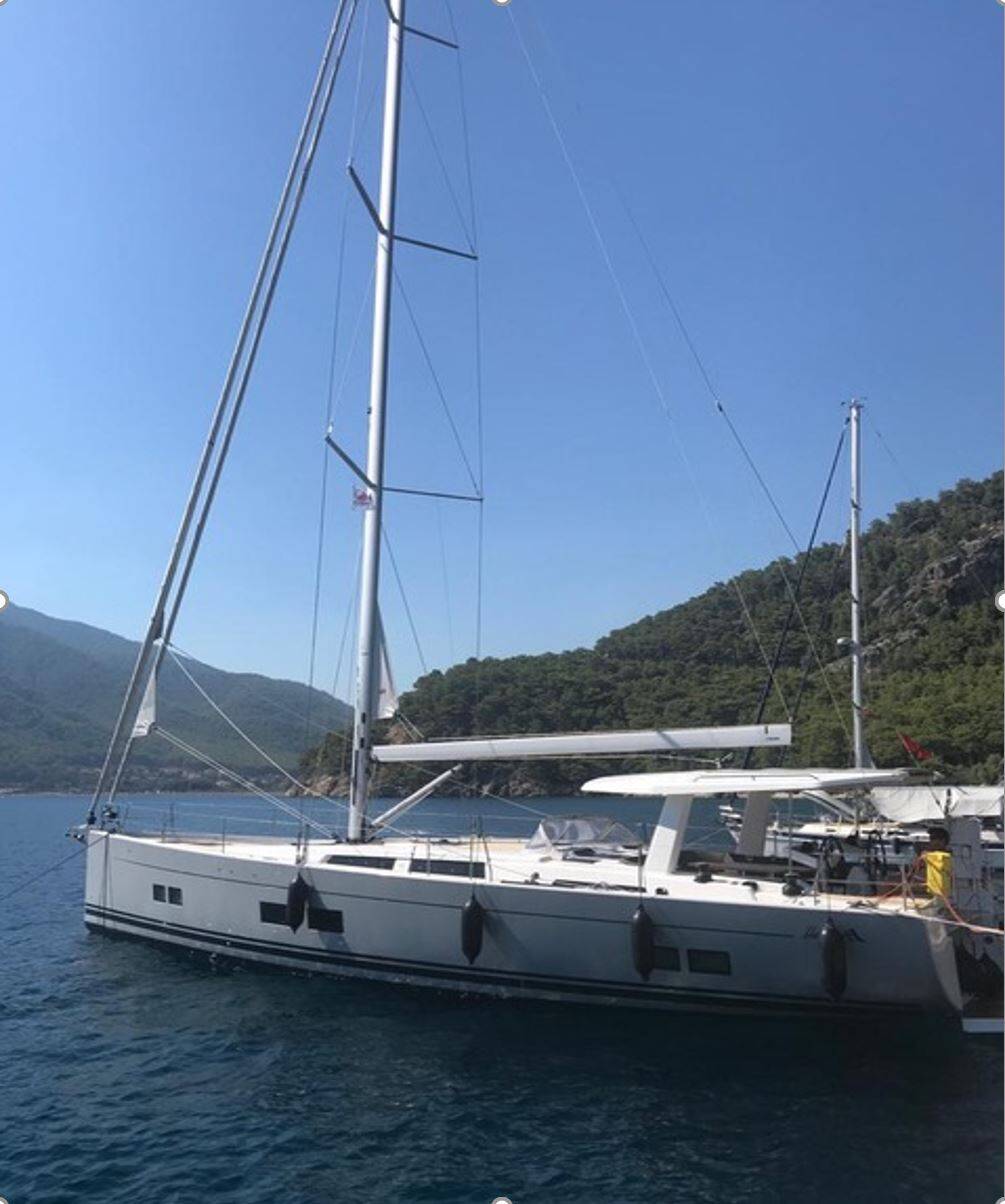 Sailing yacht Hanse 588 Ananija II, built in 2020 is anchored in the Marmaris, Netsel Marina, Aegean, Turkey. It has 3 + 1 cabins, can accommodate 6 + 1 people and has 2 toilets. Bed linen and kitchen equipment are included in the price.