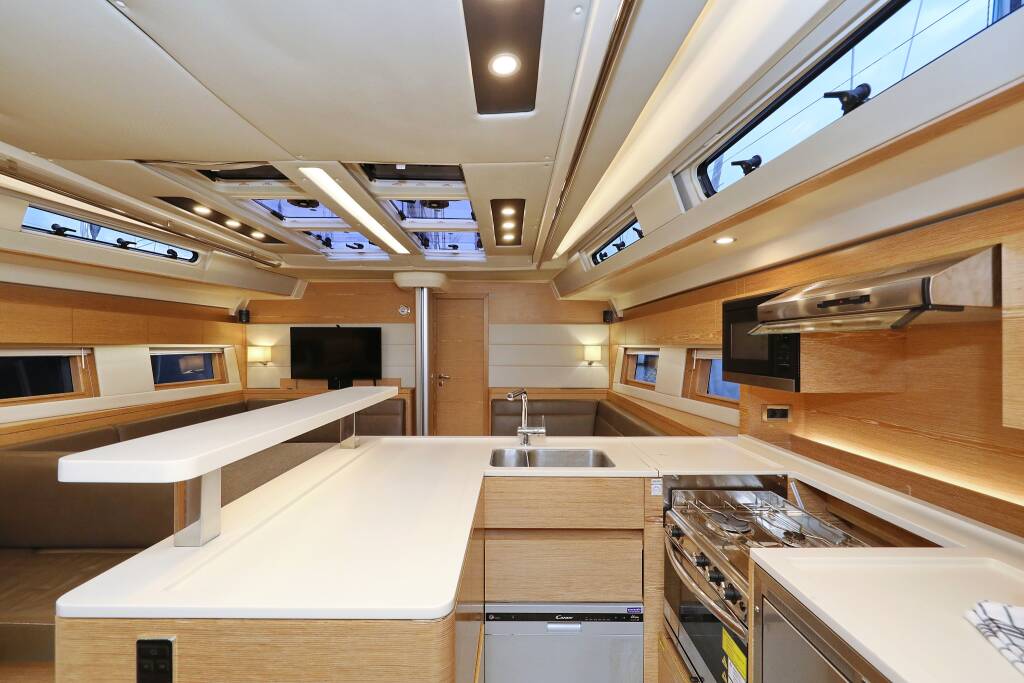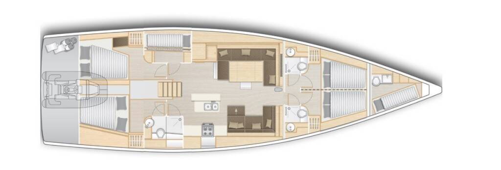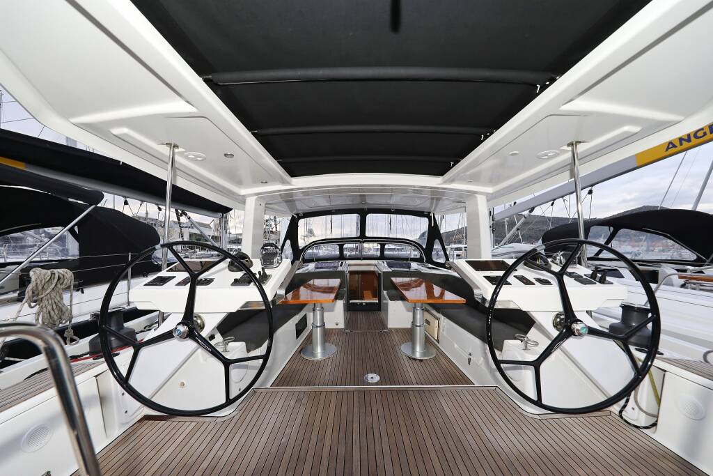 Sailing yacht Hanse 588 Jasmine, built in 2017 is anchored in the Trogir, Marina Trogir (ex.SCT), Split region, Croatia. It has 5 + 1 cabins, can accommodate 10 + 2 + 1 people and has 3 toilets. Bed linen and kitchen equipment are included in the price.