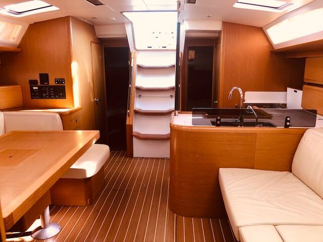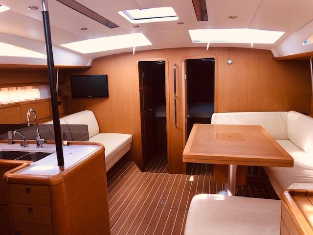 Sailing yacht Jeanneau 53 Anita, built in 2011 is anchored in the Portisco, Sardinia, Italy. It has 5 + 1 cabins, can accommodate 10 + 1 people and has 4 + 1 toilets. Bed linen and kitchen equipment are included in the price.