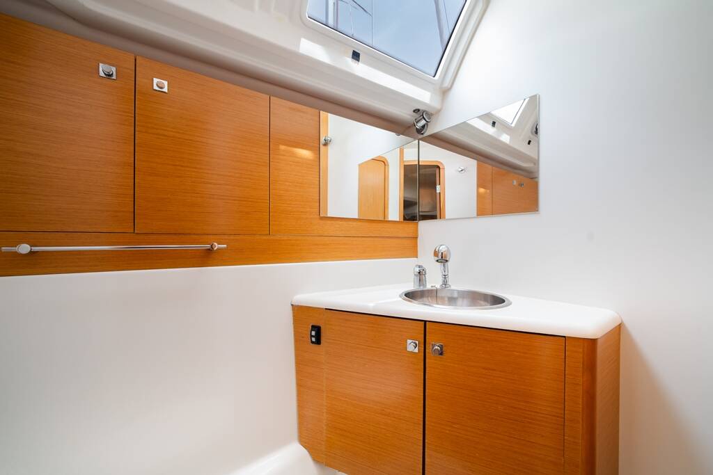Sailing yacht Jeanneau 53 Regina V, built in 2010 is anchored in the Lavrion, main port, Athens area/Saronic/Peloponese, Greece. It has 5 + 1 cabins, can accommodate 10 + 2 + 1 people and has 3 + 1 toilets. Bed linen and kitchen equipment are included in the price.