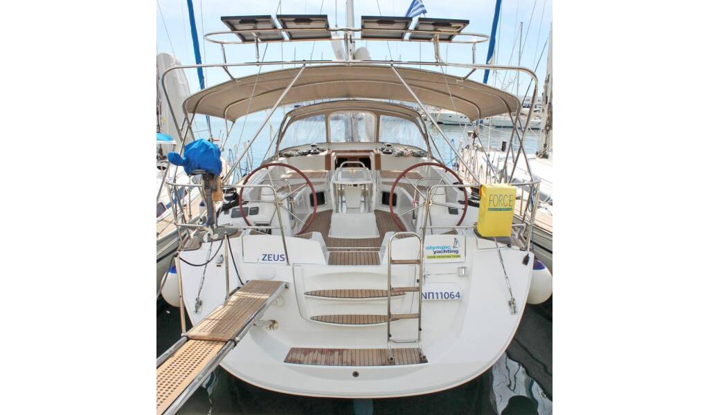 Sailing yacht Jeanneau 53 Zeus, built in 2014 is anchored in the Lavrion, main port, Athens area/Saronic/Peloponese, Greece. It has 5 + 1 cabins, can accommodate 10 + 1 people and has 3 + 1 toilets. Bed linen and kitchen equipment are included in the price.