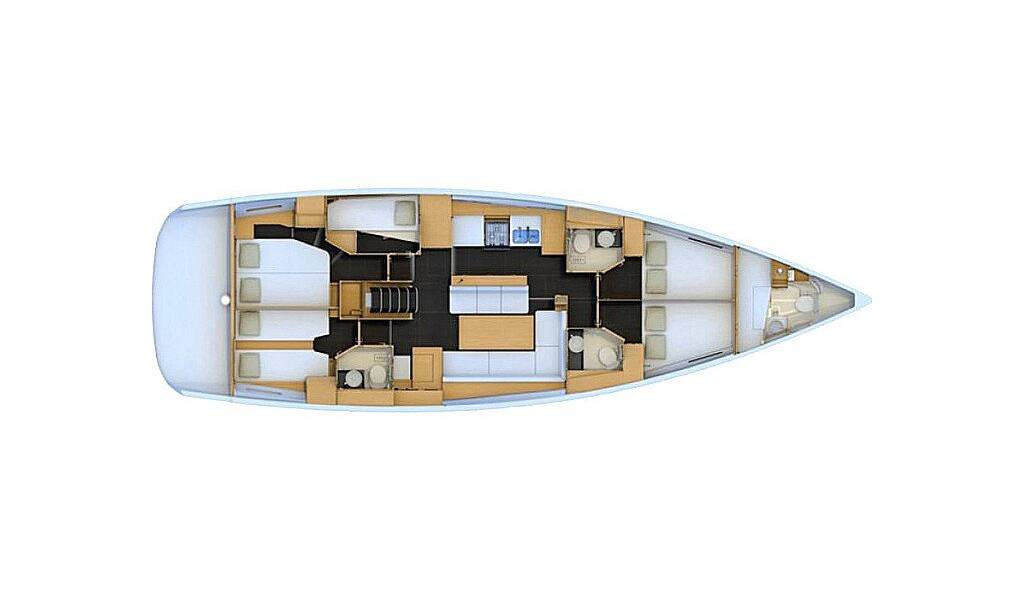 Sailing yacht Jeanneau 54 Maria II, built in 2019 is anchored in the Athens, Alimos marina, Athens area/Saronic/Peloponese, Greece. It has 5 + 1 cabins, can accommodate 10 + 1 people and has 3 + 1 toilets. Bed linen and kitchen equipment are included in the price.