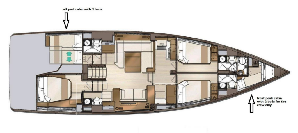 Sailing yacht Jeanneau 60 Euphoria, built in 2021 is anchored in the Athens, Attica, Nea Peramos Marina, Athens area/Saronic/Peloponese, Greece. It has 4 + 1 cabins, can accommodate 8 + 2 people and has 4 + 1 toilets. Bed linen and kitchen equipment are included in the price.