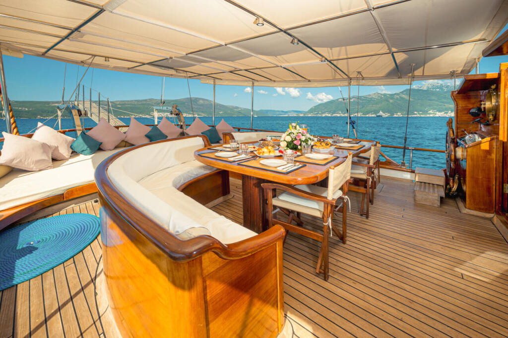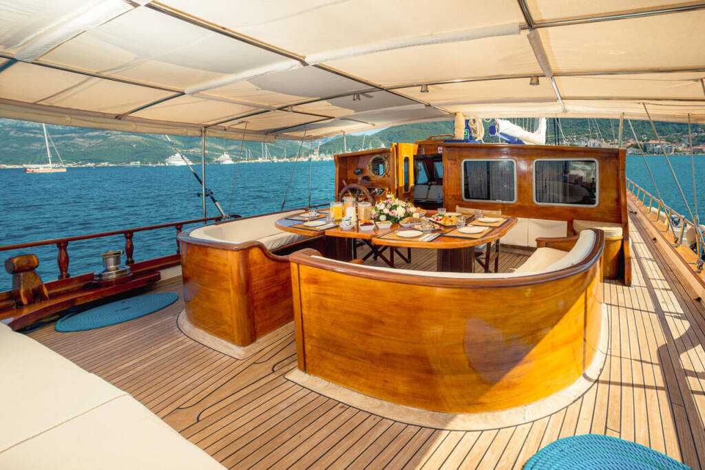 Gulet Kaptan Sevket Kaptan Sevket, built in 2003 is anchored in the Porto Montenegro, Montenegro, Montenegro . It has 6 cabins, can accommodate 12 people and has 6 toilets. Bed linen and kitchen equipment are included in the price.