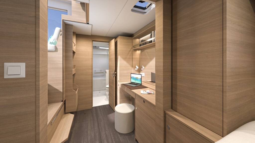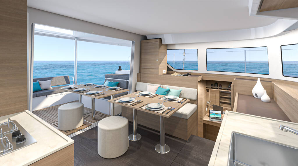 Catamaran Lagoon 38 Blue Horizon, built in 2025 is anchored in the Trogir, Yachtclub Seget (Marina Baotić), Split region, Croatia. It has 4 + 2 cabins, can accommodate 8 + 2 people and has 2 toilets. Bed linen and kitchen equipment are included in the price.