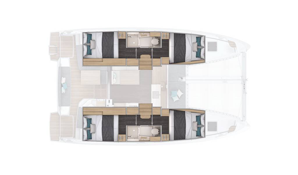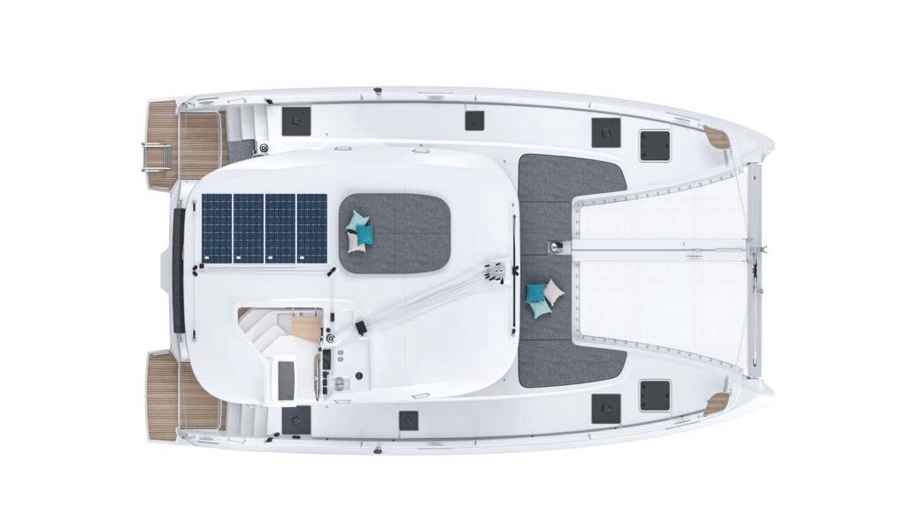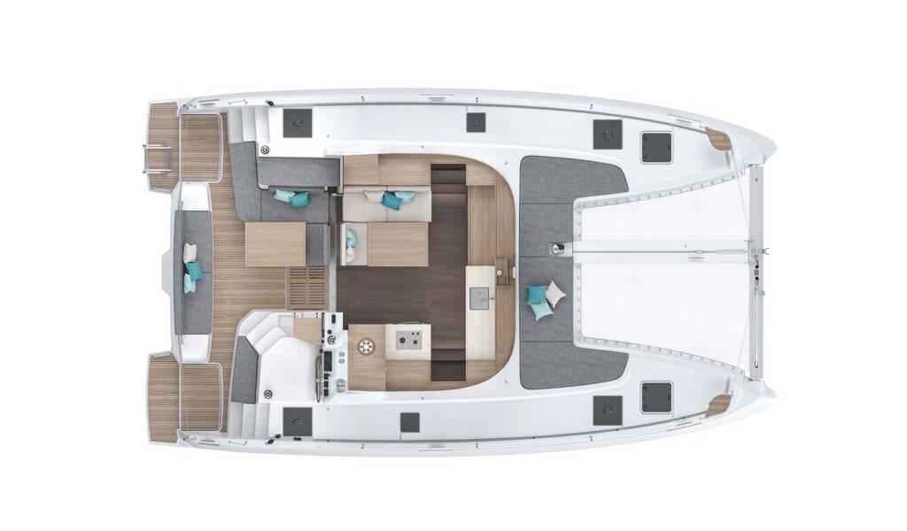 Catamaran Lagoon 38 Moana, built in 2026 is anchored in the Murter, ACI Marina Jezera, Šibenik region, Croatia. It has 4 cabins, can accommodate 8 + 1 people and has 2 toilets. Bed linen and kitchen equipment are included in the price.