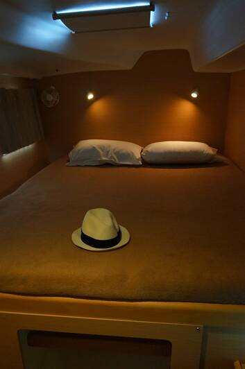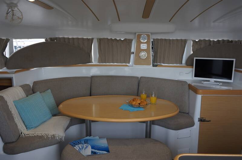 Catamaran Lagoon 380 S2 Dido, built in 2014 is anchored in the Corfu, Gouvia Marina, Ionian Islands, Greece. It has 4 + 2 cabins, can accommodate 8 + 2 people and has 2 toilets. Bed linen and kitchen equipment are included in the price.