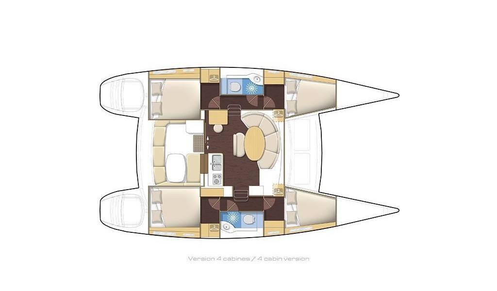 Catamaran Lagoon 380 S2 Felicite, built in 2016 is anchored in the Seychelles, Mahe, Mahé, Seychelles. It has 4 + 2 cabins, can accommodate 8 + 2 people and has 2 toilets. Bed linen and kitchen equipment are included in the price.