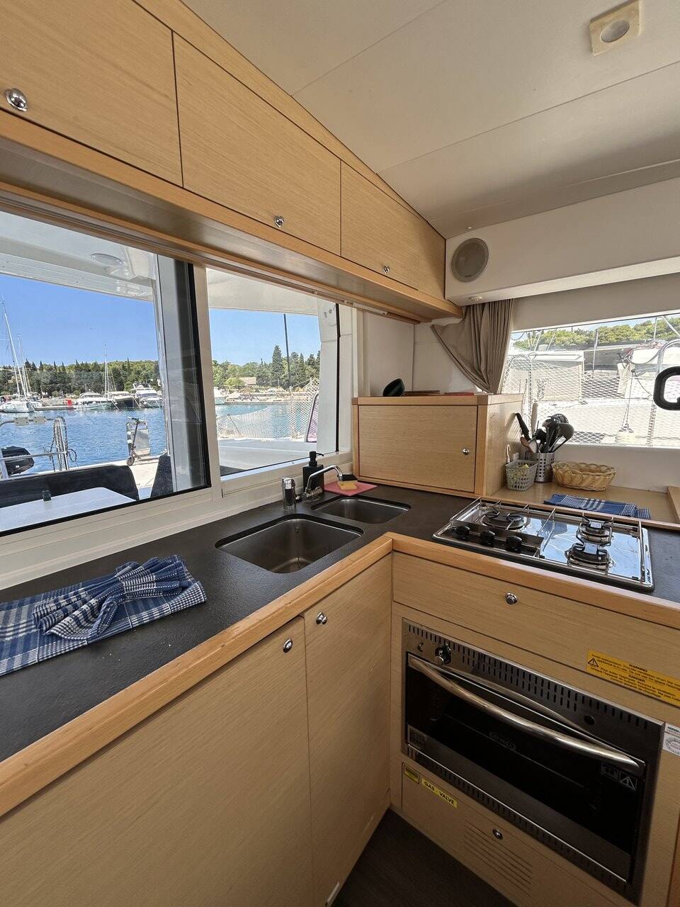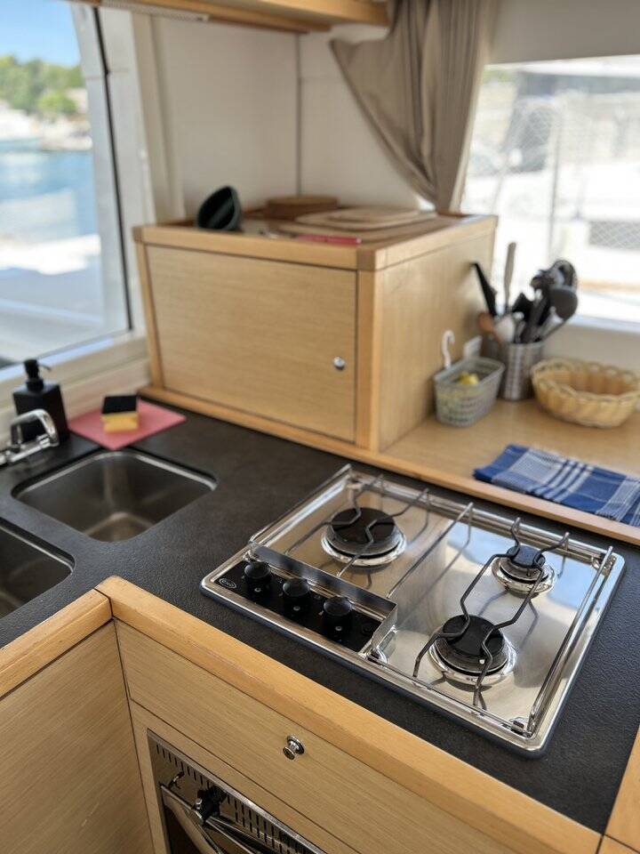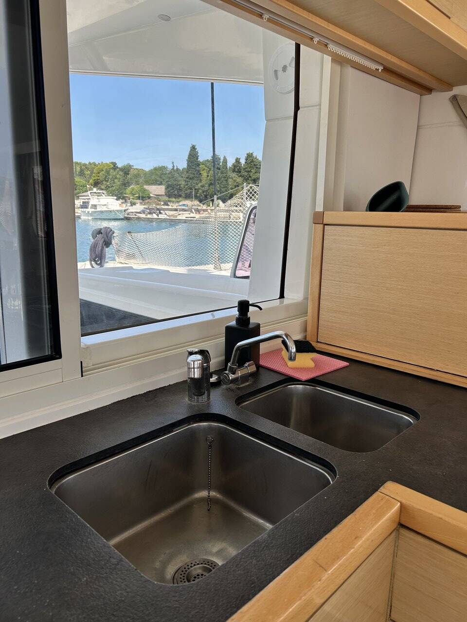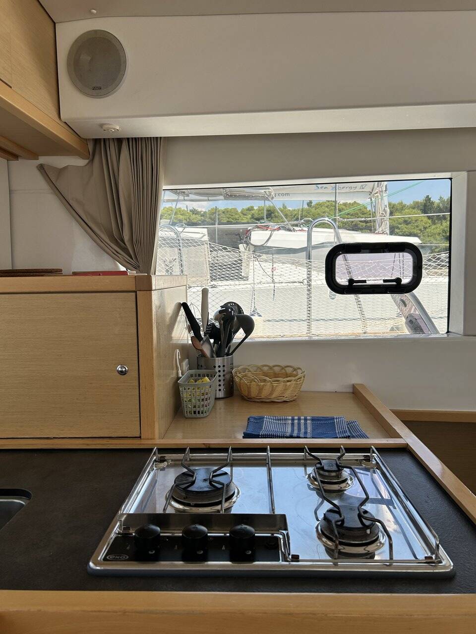 Catamaran Lagoon 39 Nirvana, built in 2017 is anchored in the Pula, Marina Polesana, Istra, Croatia. It has 4 + 2 cabins, can accommodate 8 + 2 + 2 people and has 2 toilets. Bed linen and kitchen equipment are included in the price.