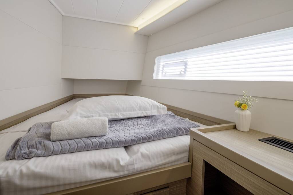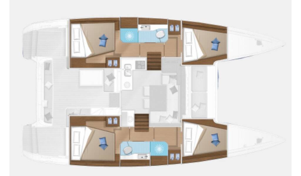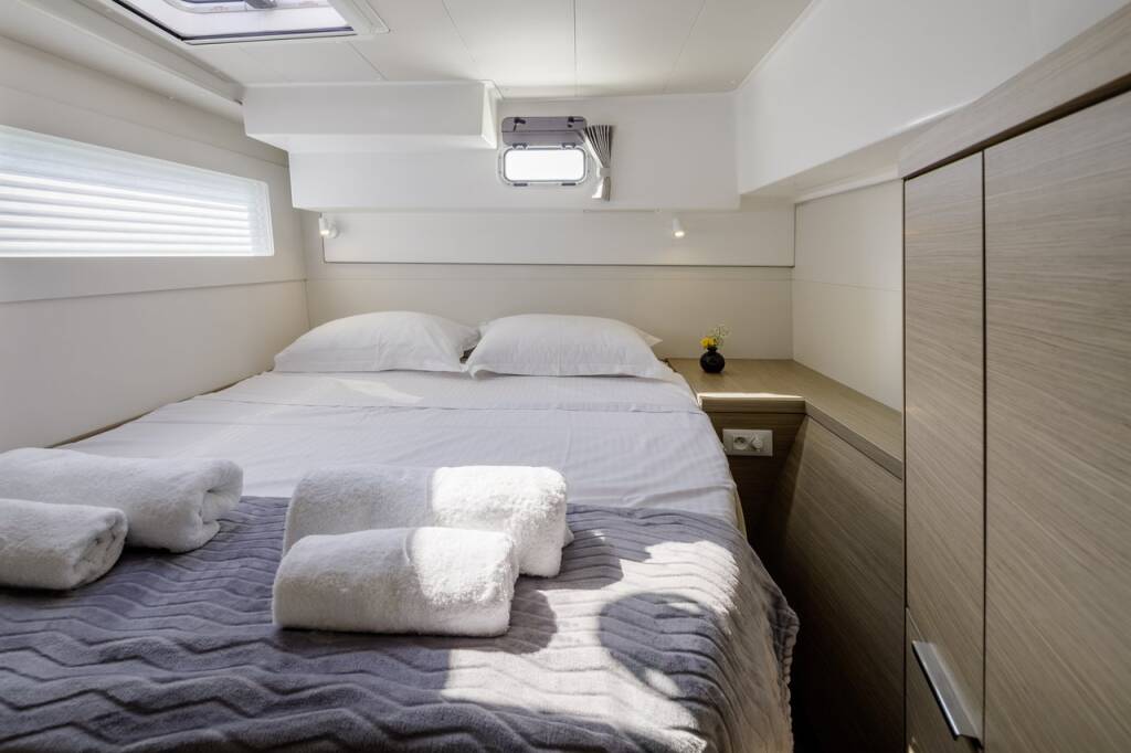 Catamaran Lagoon 40 Demy, built in 2023 is anchored in the Porto Heli, Athens area/Saronic/Peloponese, Greece. It has 4 + 2 cabins, can accommodate 8 + 2 people and has 4 toilets. Bed linen and kitchen equipment are included in the price.