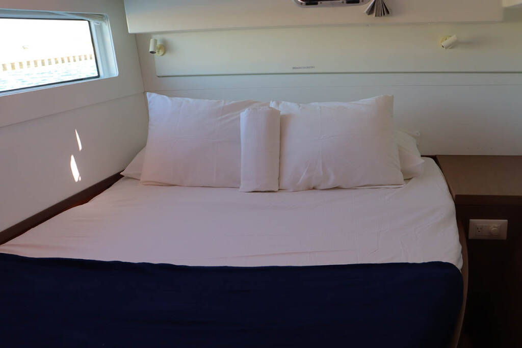 Catamaran Lagoon 40 Kylana, built in 2020 is anchored in the BVI, Tortola, Nanny Cay Marina, British Virgin Islands, British Virgin Islands. It has 3 + 2 cabins, can accommodate 6 + 2 + 2 people and has 2 toilets. Bed linen and kitchen equipment are included in the price.