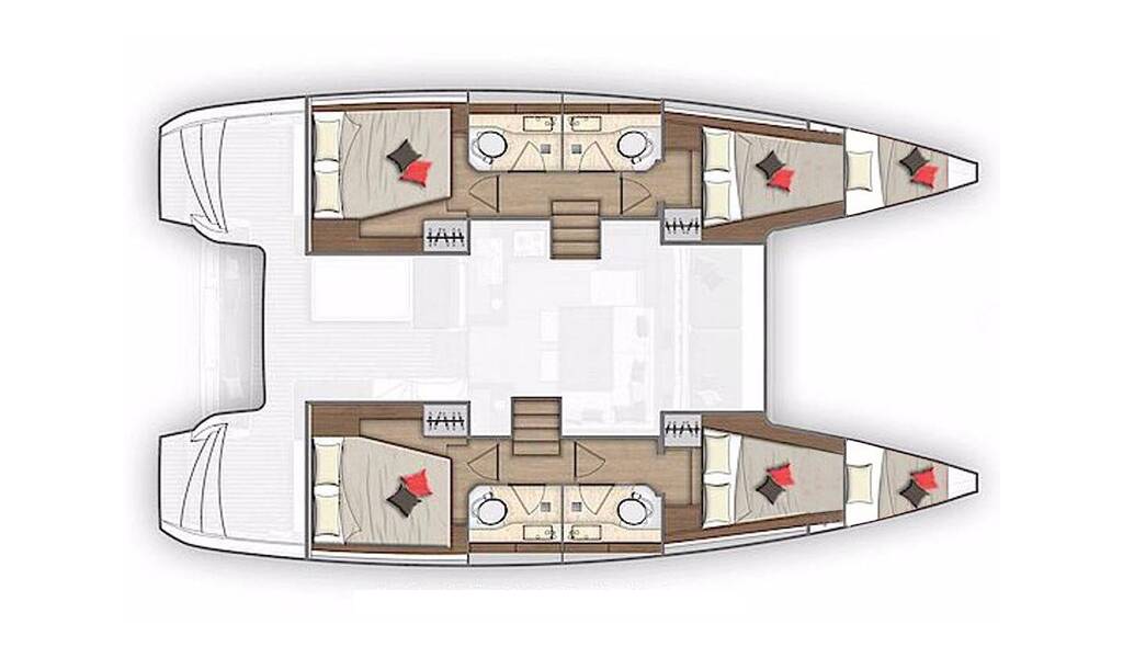Catamaran Lagoon 40 La Luna, built in 2019 is anchored in the Sukosan, D-Marin Dalmacija Marina, Zadar region, Croatia. It has 4 + 2 cabins, can accommodate 8 + 2 + 2 people and has 4 toilets. Bed linen and kitchen equipment are included in the price.