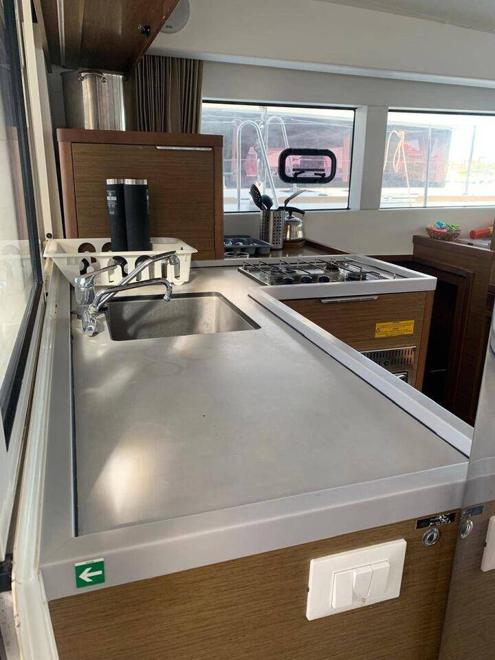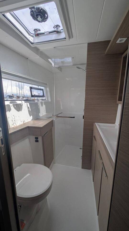 Catamaran Lagoon 40 Last One, built in 2025 is anchored in the Guadeloupe, La Marina Bas du Fort, Guadeloupe, Caribbean. It has 3 + 1 cabins, can accommodate 6 + 1 people and has 2 toilets. Bed linen and kitchen equipment are included in the price.